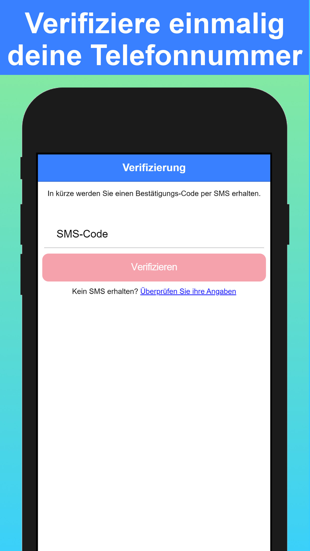 2. Verifiziere dich einmalig mit deiner Telefonnummer.