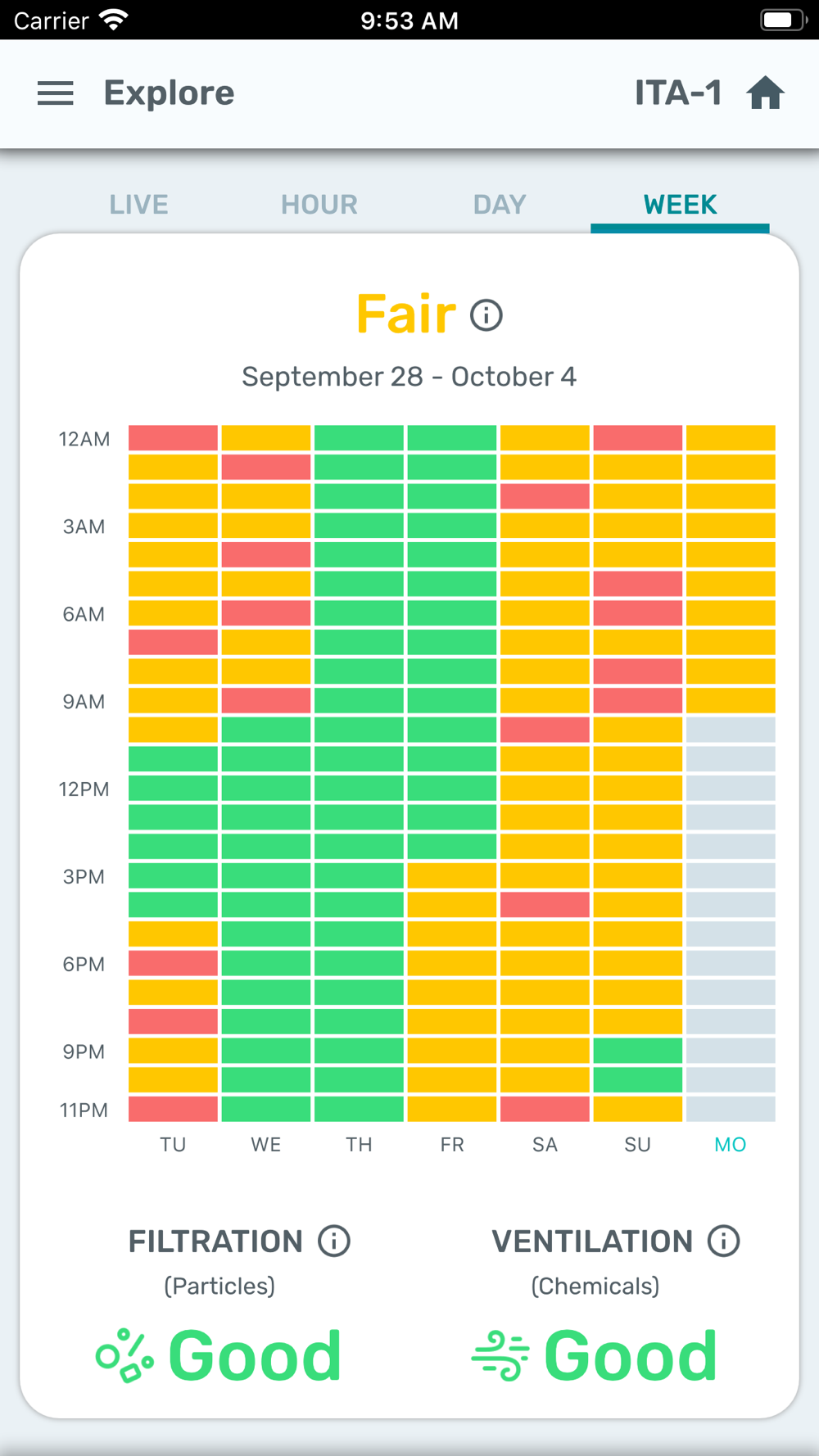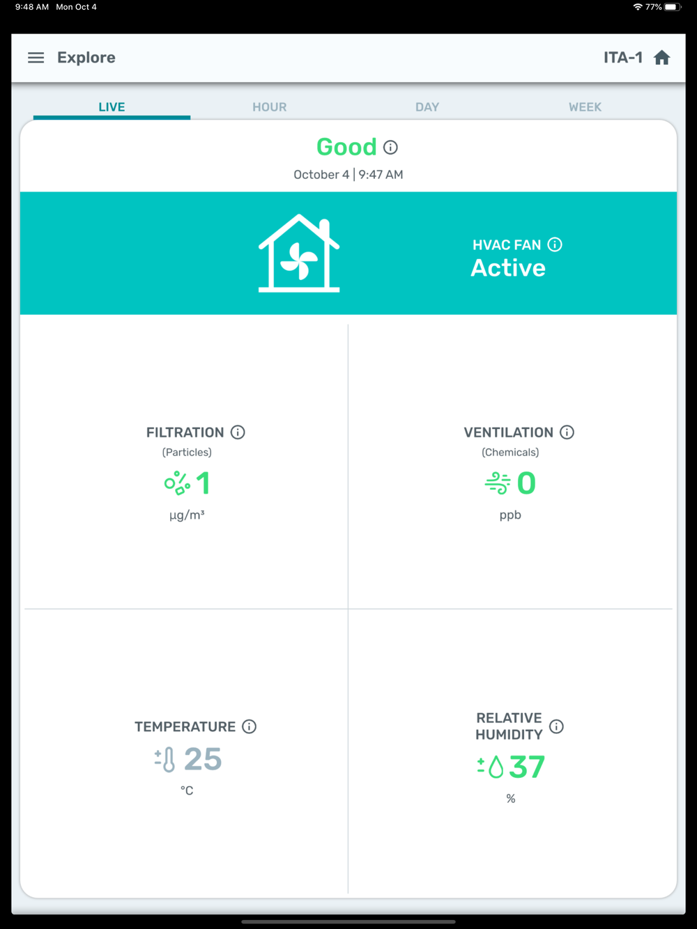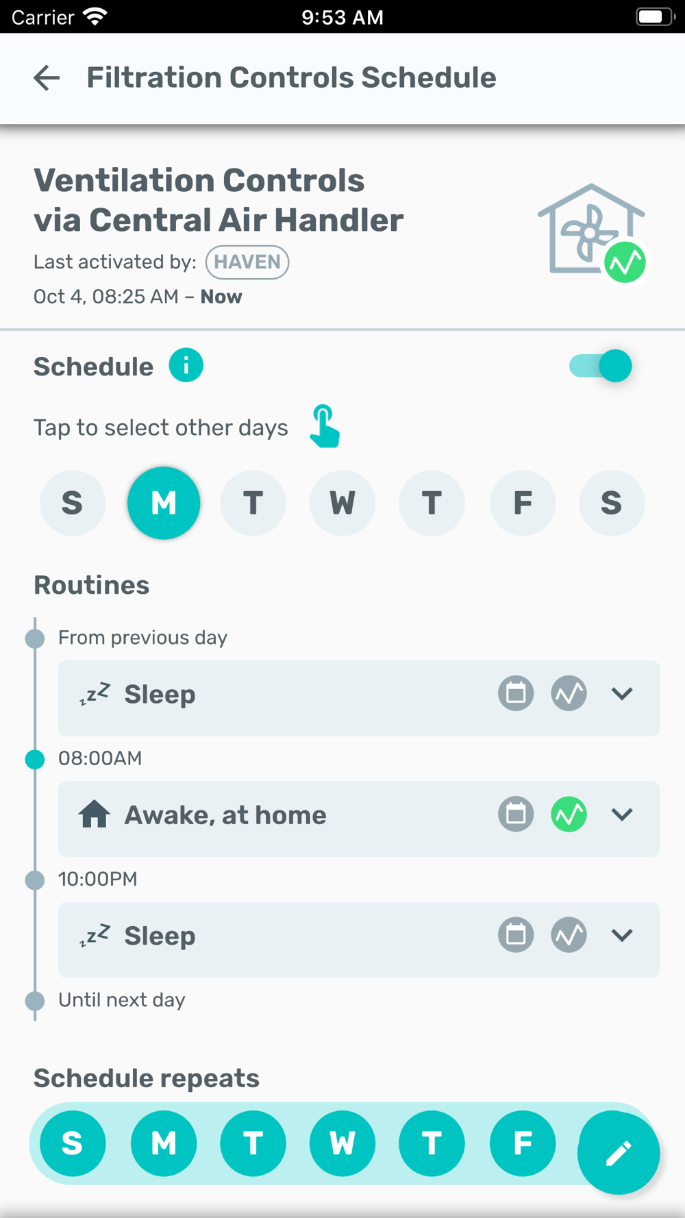 HAVEN IAQ provides you with 24/7/365 insight into your home’s filtration, ventilation, relative humidity and temperature. Also provided are recommendations when air quality thresholds are crossed. The "Contact your HAVEN Pro" tab makes it easy to get in touch with your HVAC professional for clean air services, year round.