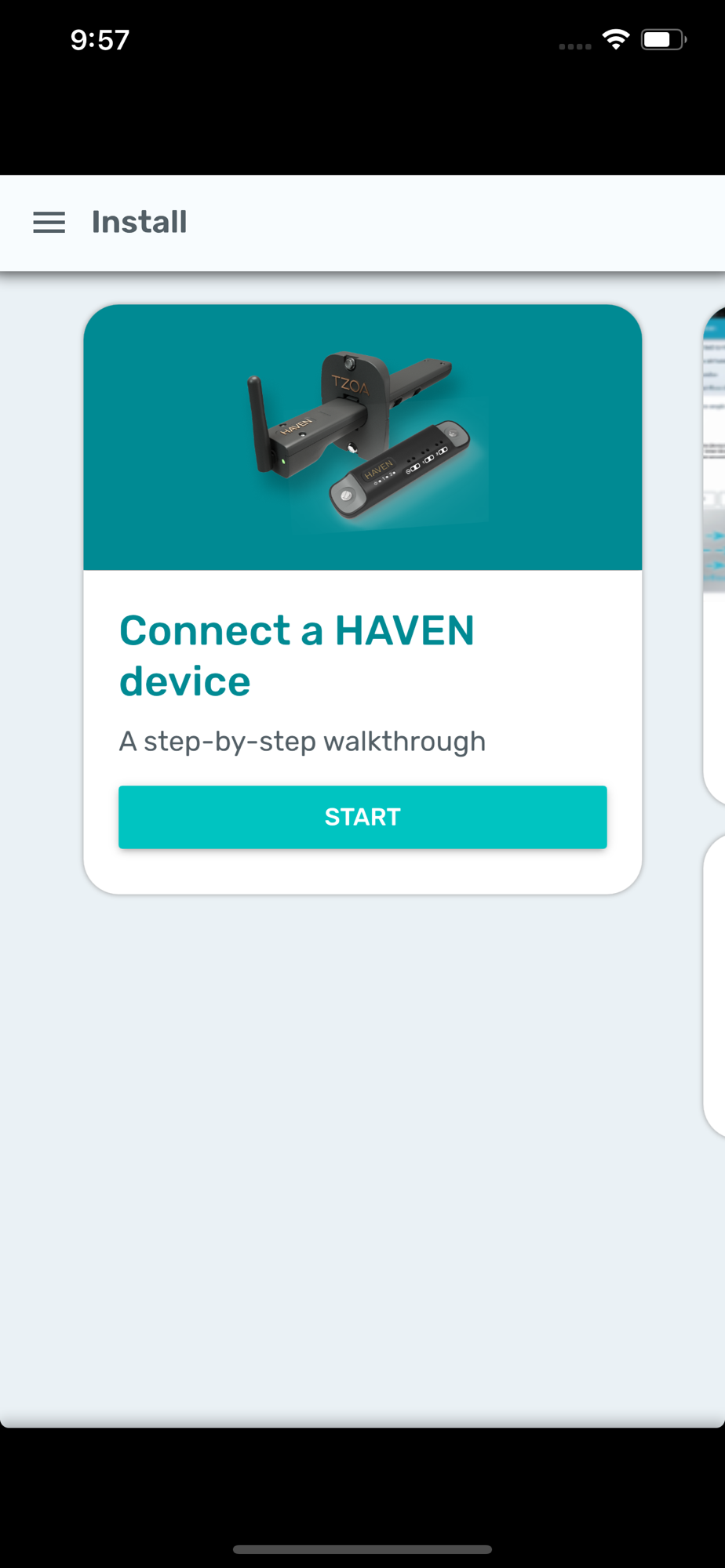 Download the app & apply to become a HAVEN Pro & be featured in our “Find a Pro” database. After becoming a HAVEN Pro, this app supports you through the physical installation of the HAVEN Central Air Monitor, as well as connecting the device to the home’s WiFi network.