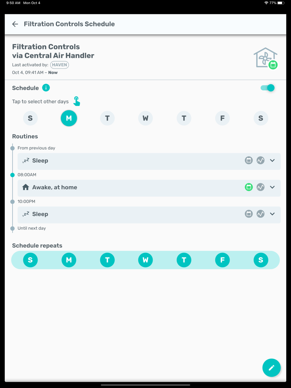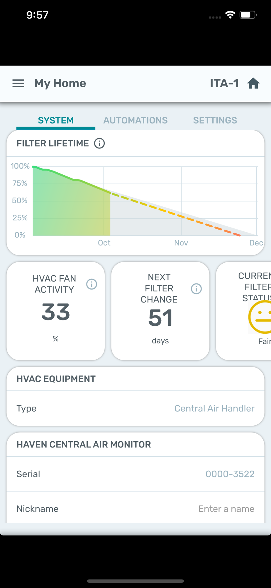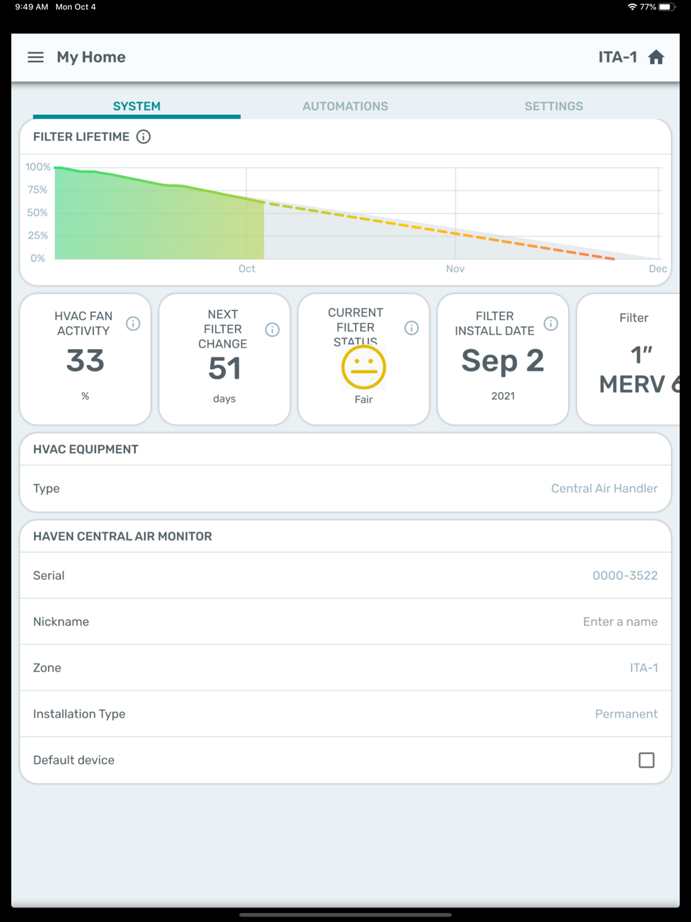 HAVEN IAQ converts your existing central air system into a professionally-managed indoor air quality solution through our patented Central Air Monitor. Use the app to schedule an install with a certified HAVEN Pro in your area and manage your home’s air quality from anywhere in the world.