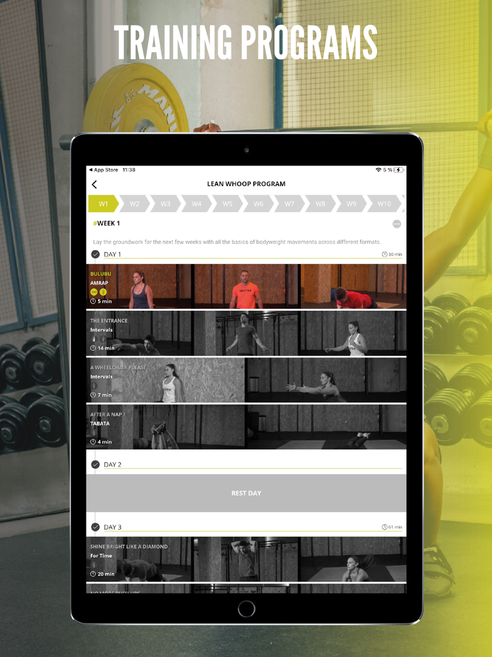 - Lean Whoop program: Daily 1 hour workout sessions to be in the best shape of your life.