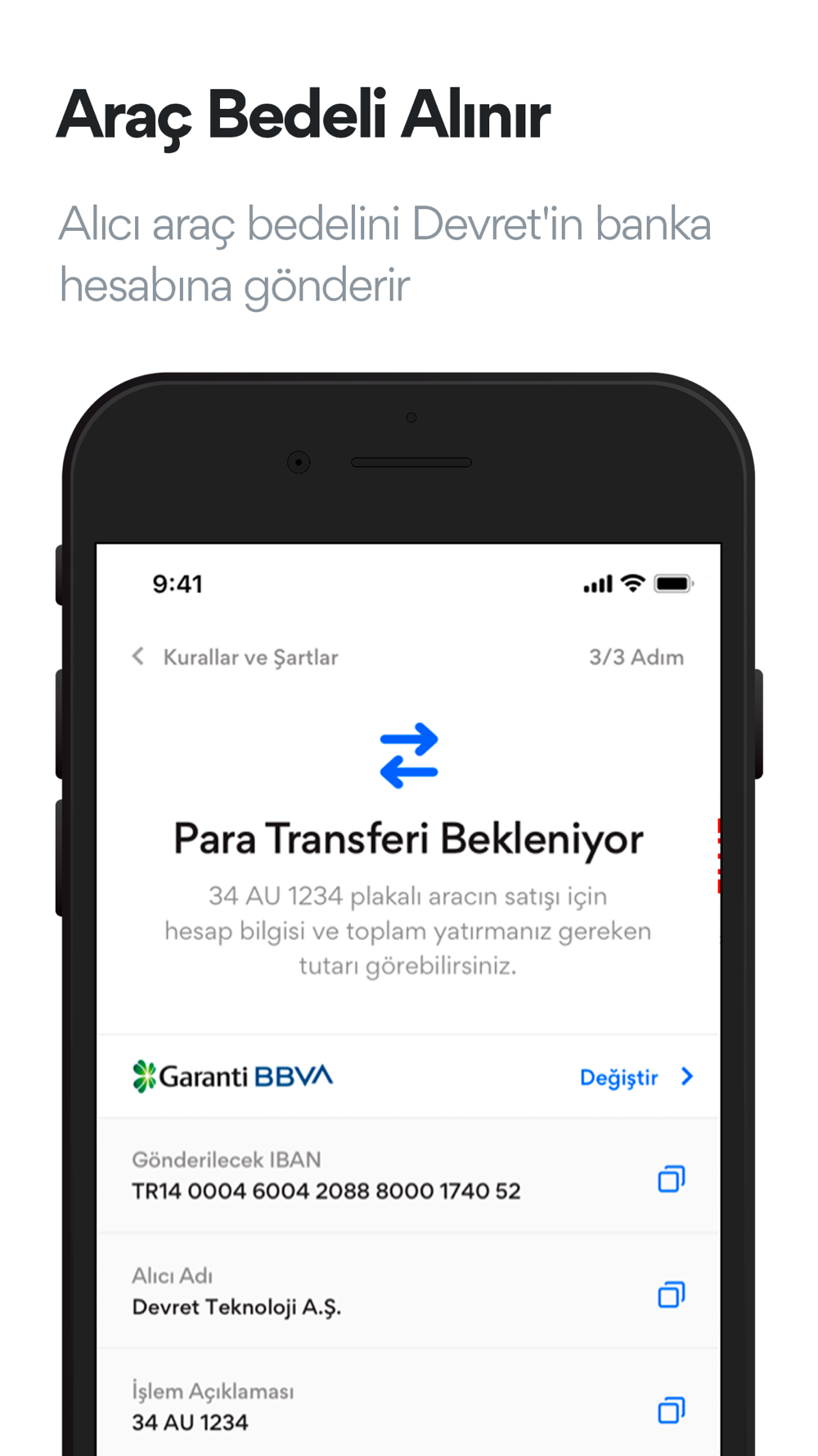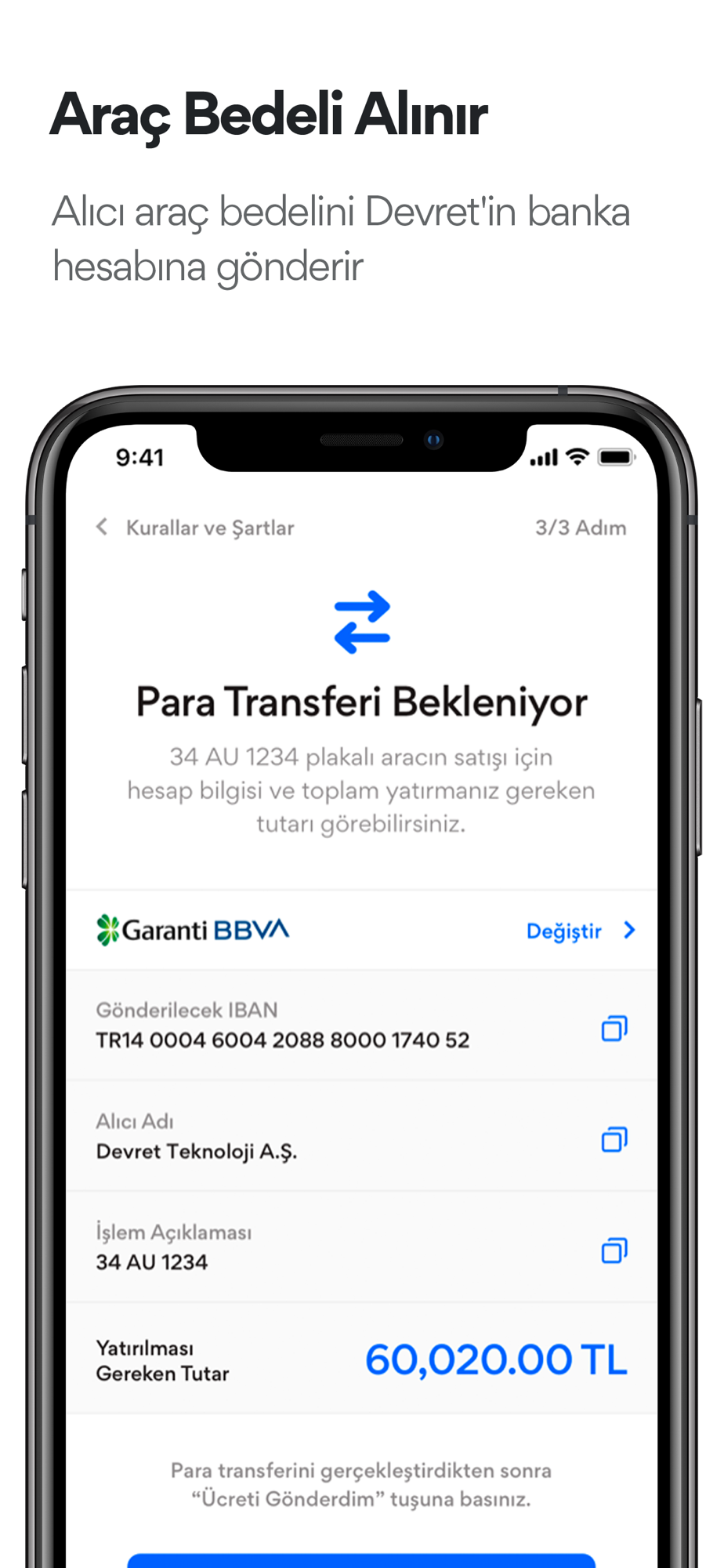 Devret ile ikinci el araç devir işlemlerinde para transferi ve aracın noterde devrinin eş zamanlı gerçekleştiğinden emin olabilirsiniz. Devret para transferinin aracın noterdeki satışı ile aynı anda gerçekleşmesini sağlar.