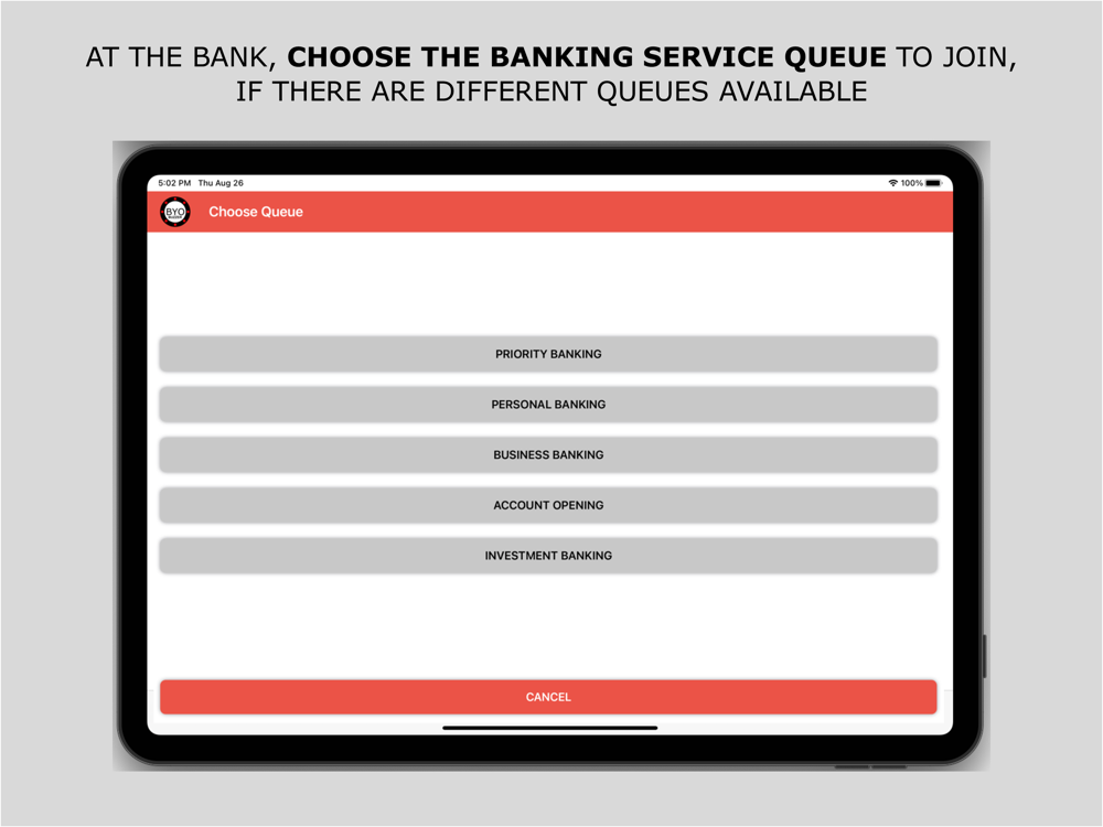 Now you can choose to join separate queues provided by restaurants with different table-size queues and banks providing different services.