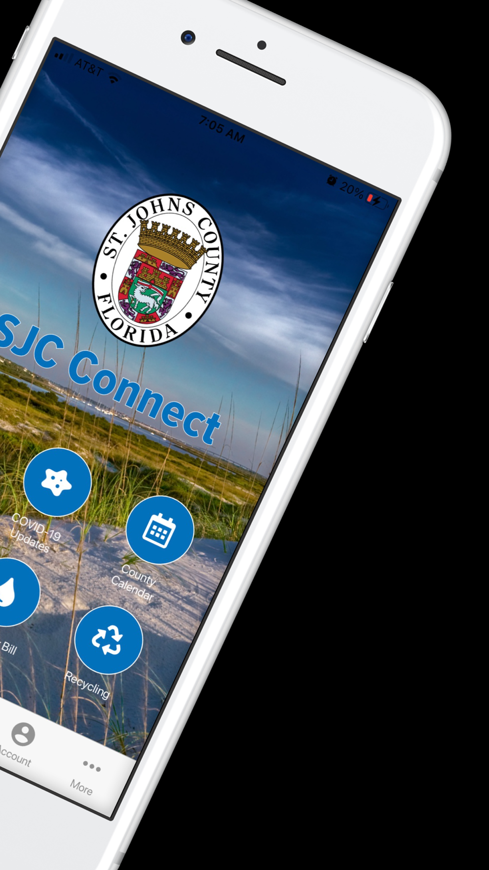 SJC Connect is a free resource for residents of St. Johns County, Florida, that enables them to report issues from their mobile devices. Requests are sent directly to St. Johns County staff for processing and review. A tracking number is provided for each service request, and notifications are sent when the status of the request is updated.