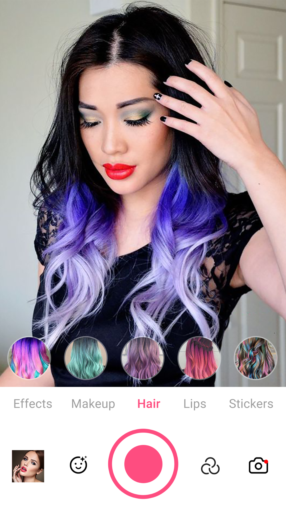 + Fancy Photo Editor: Go wild and change your hair color to the hottest trends. Try "Cotton Candy", "Sunset", or even "Icy Blue" for a mystic look