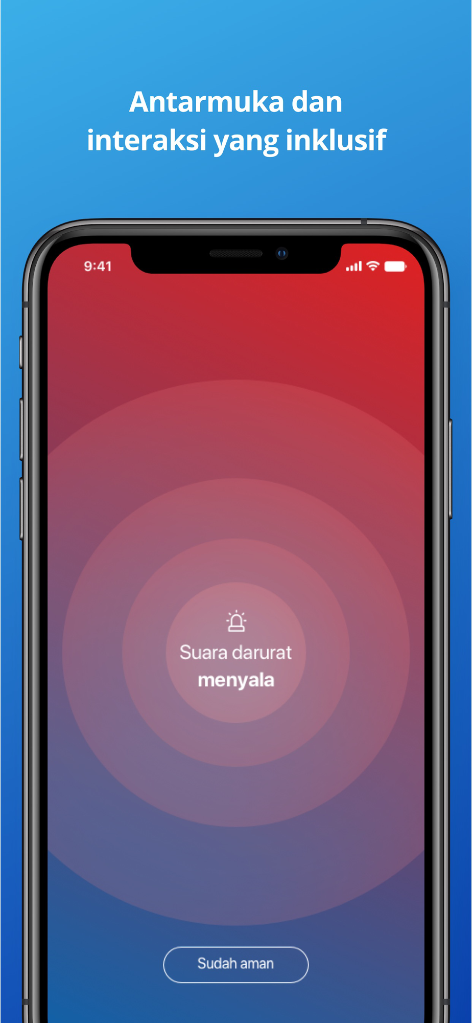 Hanya dengan satu ketukan, anda dapat menginformasikan kepada orang-orang sekitar bila anda sedang berada dalam bahaya. Anda bisa menarik perhatian orang-orang dengar di sekitar anda untuk menghindari bahaya lebih lanjut.