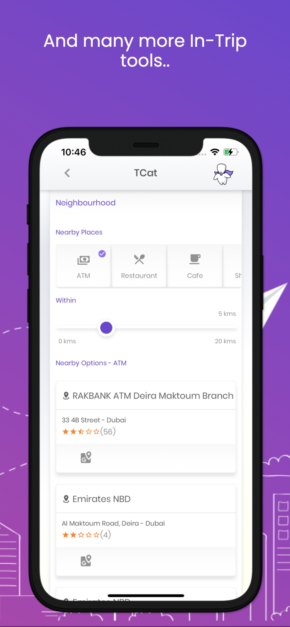 * Locate nearby places to hotel, such as cafes, restaurants, pharmacies etc