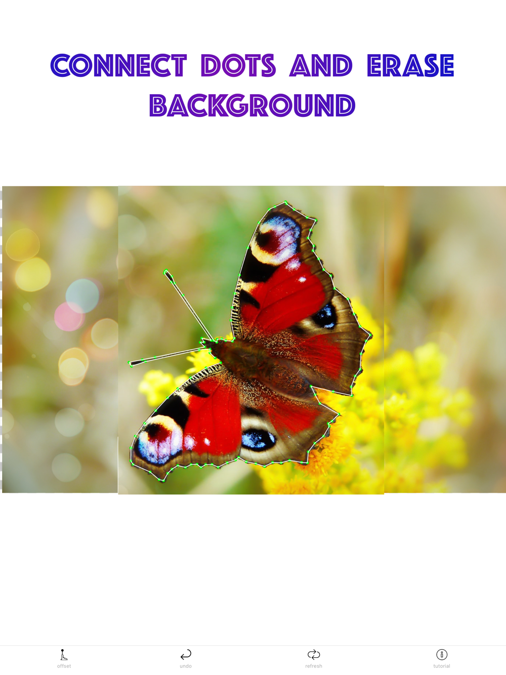 Simplified and more accurate erasing of photos/images. Select the portion of a photo by adding dots and remove the background or selection.