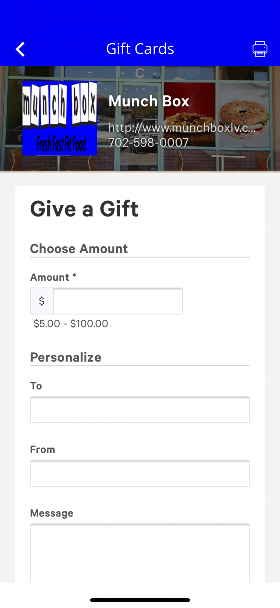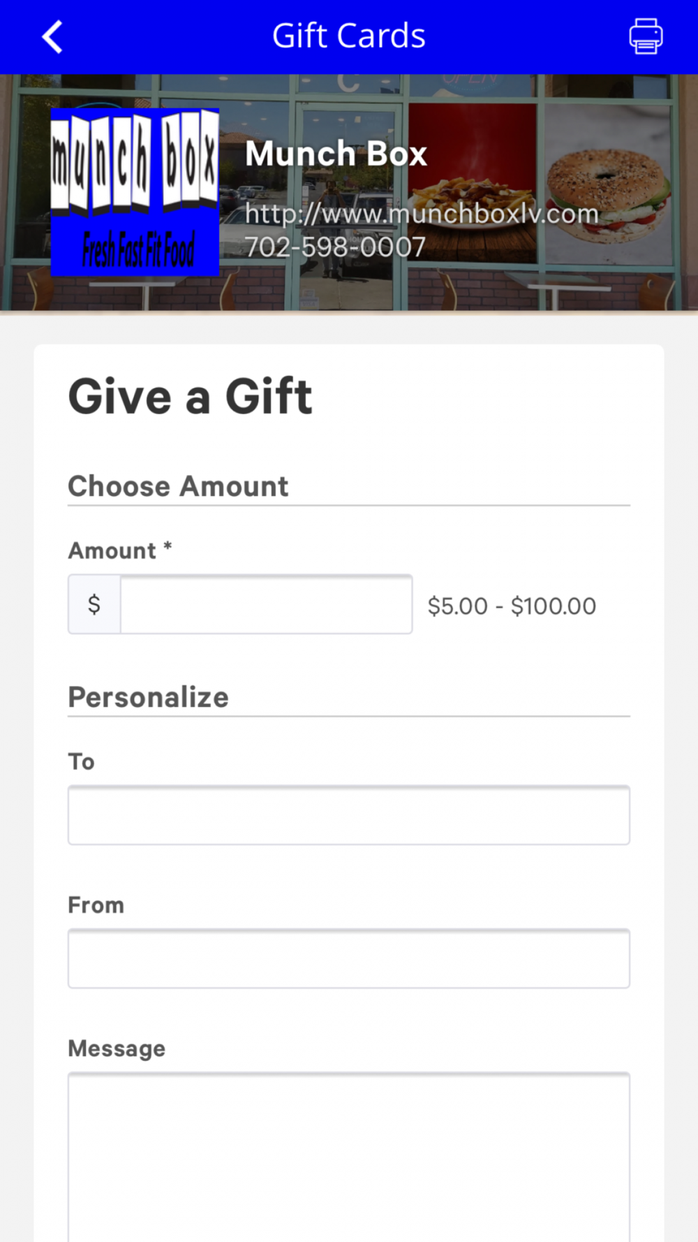 Customers can purchase gift cards directly from the app. Also, can pick them up from one of our locations.
