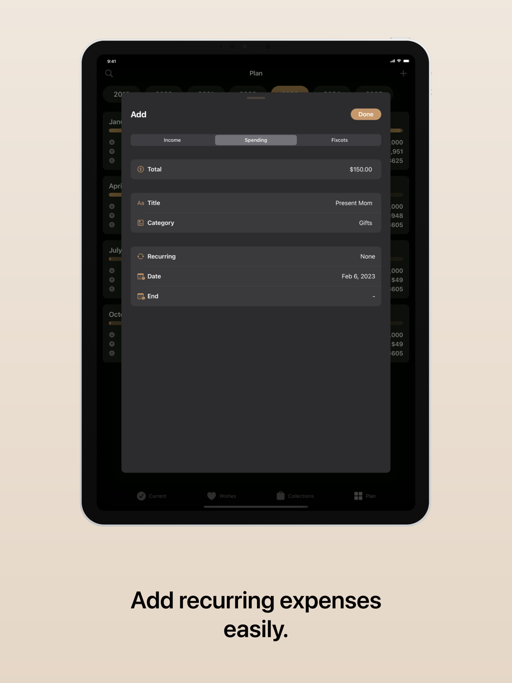 • Add wishes and convert them to expenses