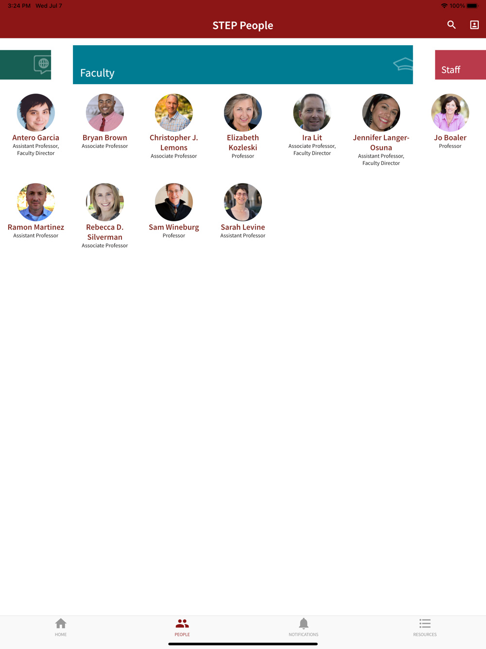 STEP Mobile is the app for the Stanford Teacher Education Program community. It provides STEP students, faculty, and staff access to information and resources, as well as a way to learn more about each other.