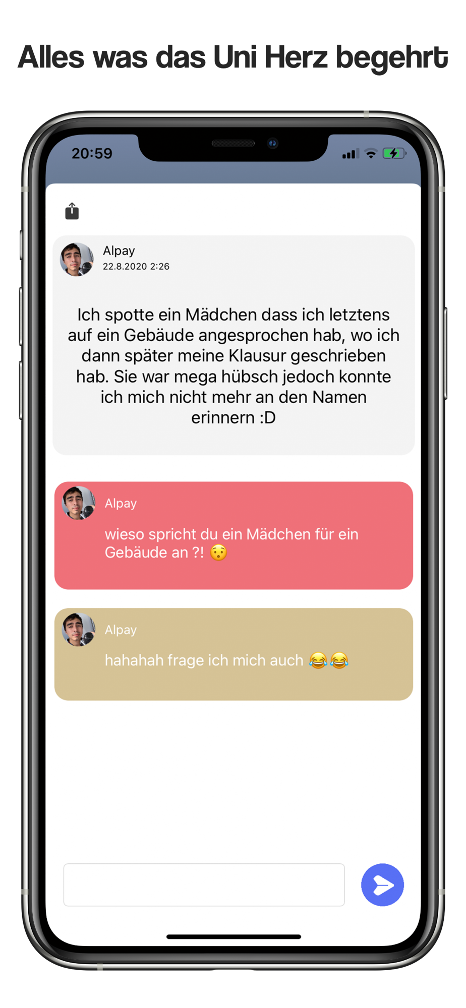 - Sehe Memes, Videos und Bilder von anderen Studierenden.