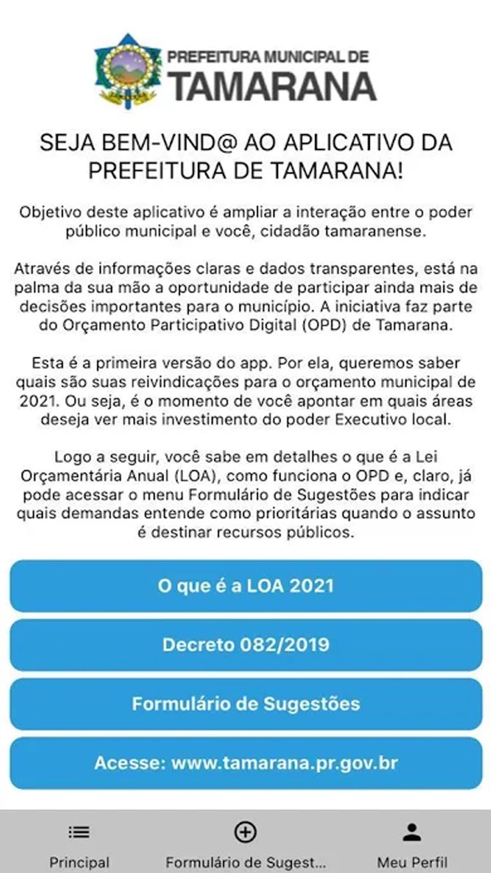 Objetivo deste aplicativo é ampliar a interação entre o poder público municipal e você, cidadão tamaranense.