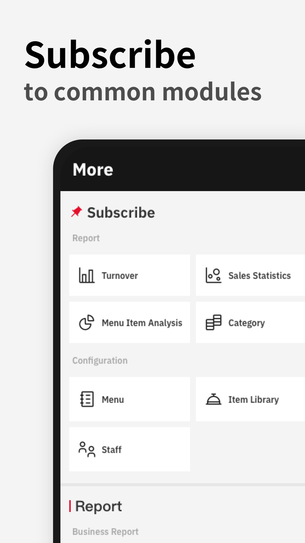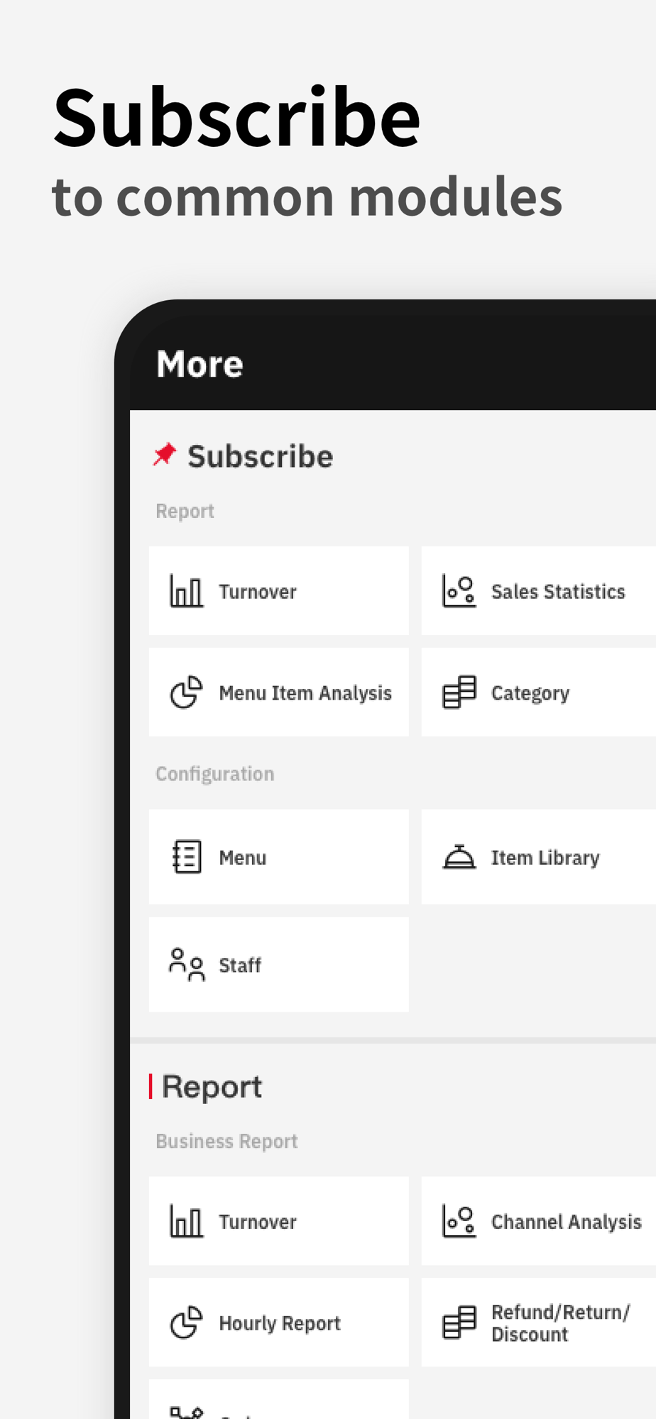 TableTop Live is an operating data management system that can be connected to the POS system to view operating data, generate visual reports, and receive system notifications.