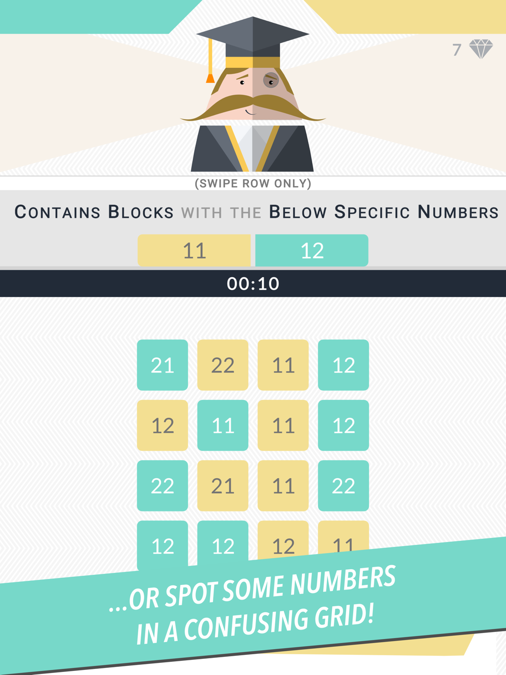 Sharpen your brain, sharpen your eyesight, sharpen your reflexes & bring it all together to quickly scan the grid in different directions & find that correct row or column before the timer runs out!