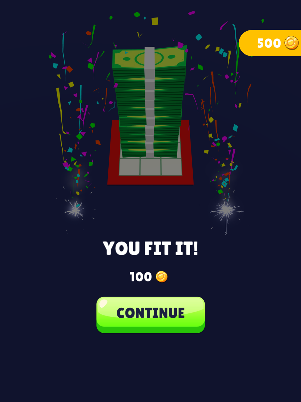 HOW MUCH MONEY CAN YOU FIT IN A BOX? We challenge you to test yourself! Every item you ever look for, all of them are around you. All you have to do is collocate them right. Fill the area you’re given with the most valued items as much as possible and pass the levels. Special levels with only thousands of dollars worth of gold and money are waiting for you, WHAT ARE YOU WAITING FOR?