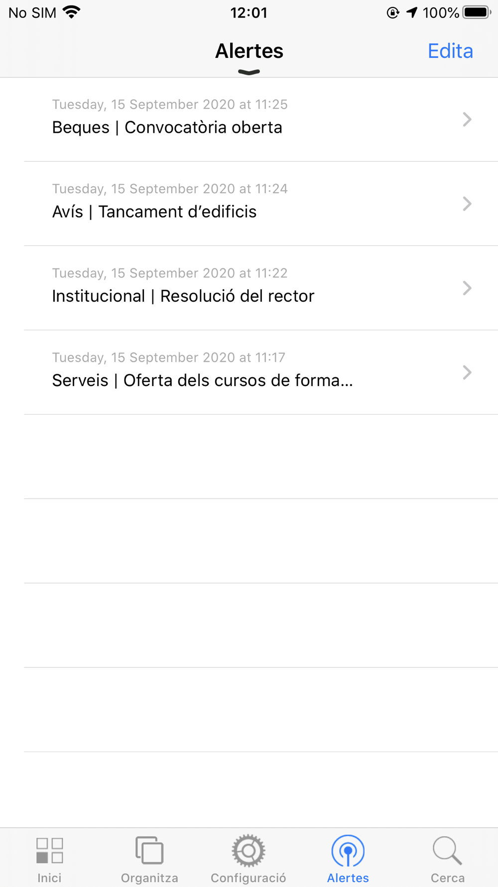 · Receive personalized information and alerts as pop-up notifications: University of Barcelona and faculty news and events, new grades in your academic record, Virtual Campus tasks, and status updates for grant applications.