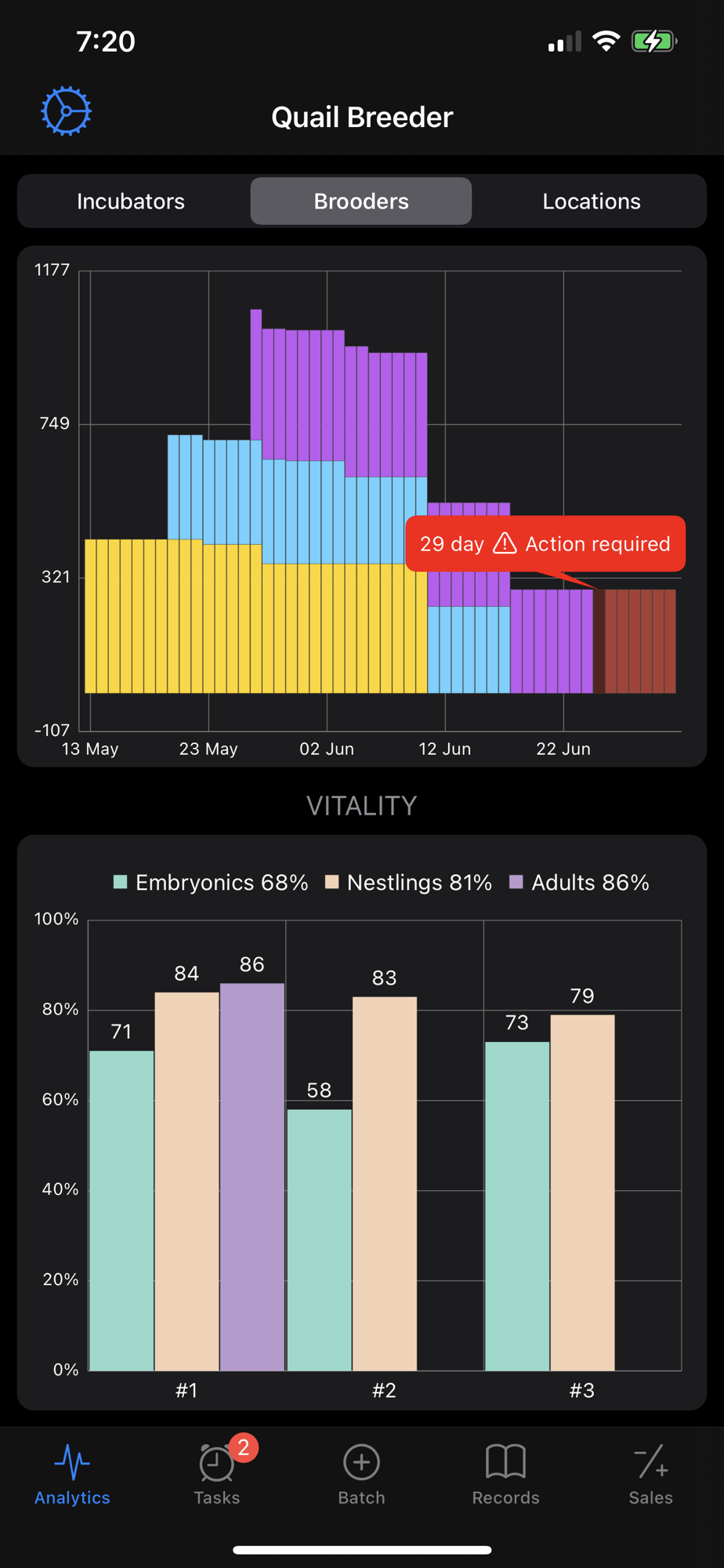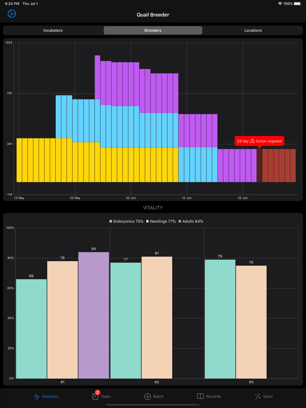 - A visual display of the load of the equipment used (incubators, brooders, cages) makes it easy to understand how effectively it is being used and to plan the farmer needs actions to expand his business