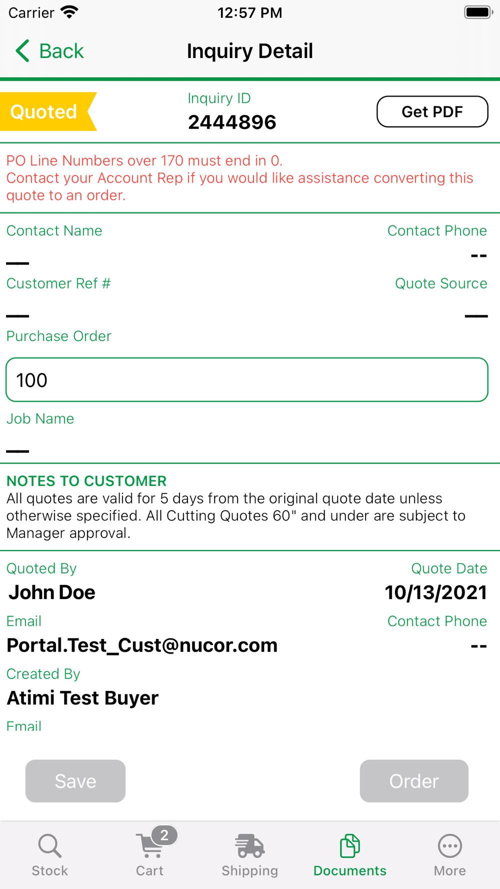 Cart - Added Order & Inquiry Carts w/ all relevant pricing information to make orders easy!