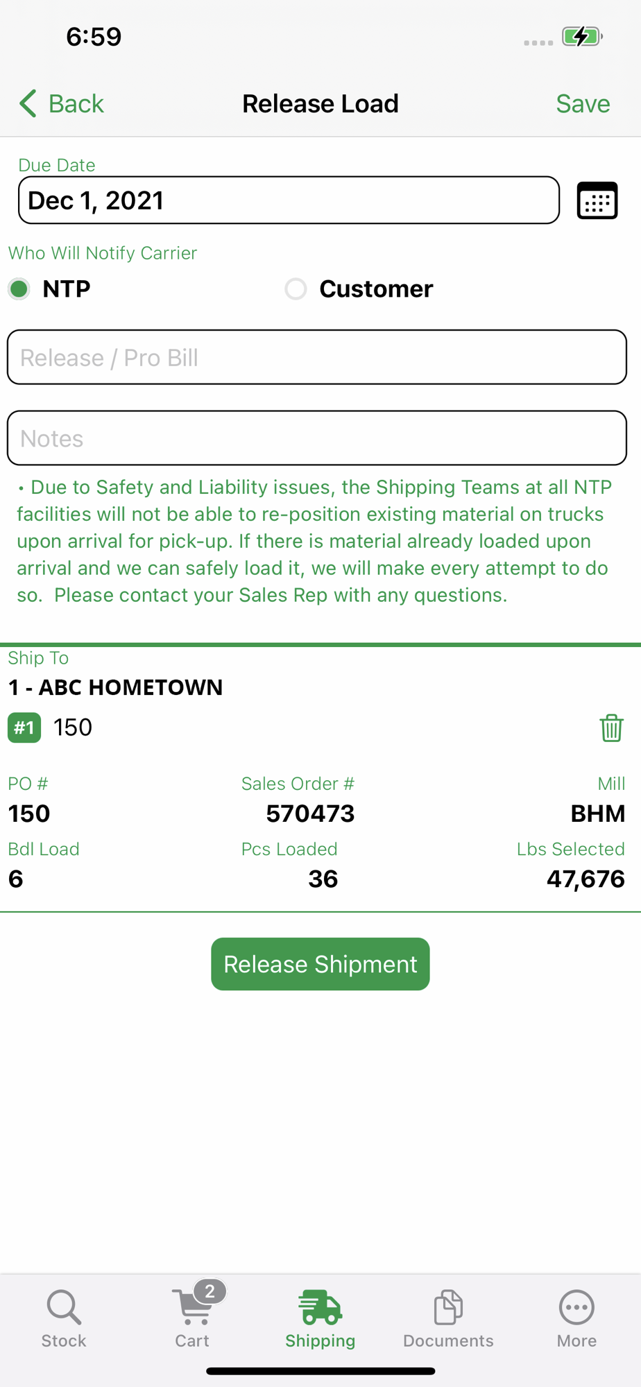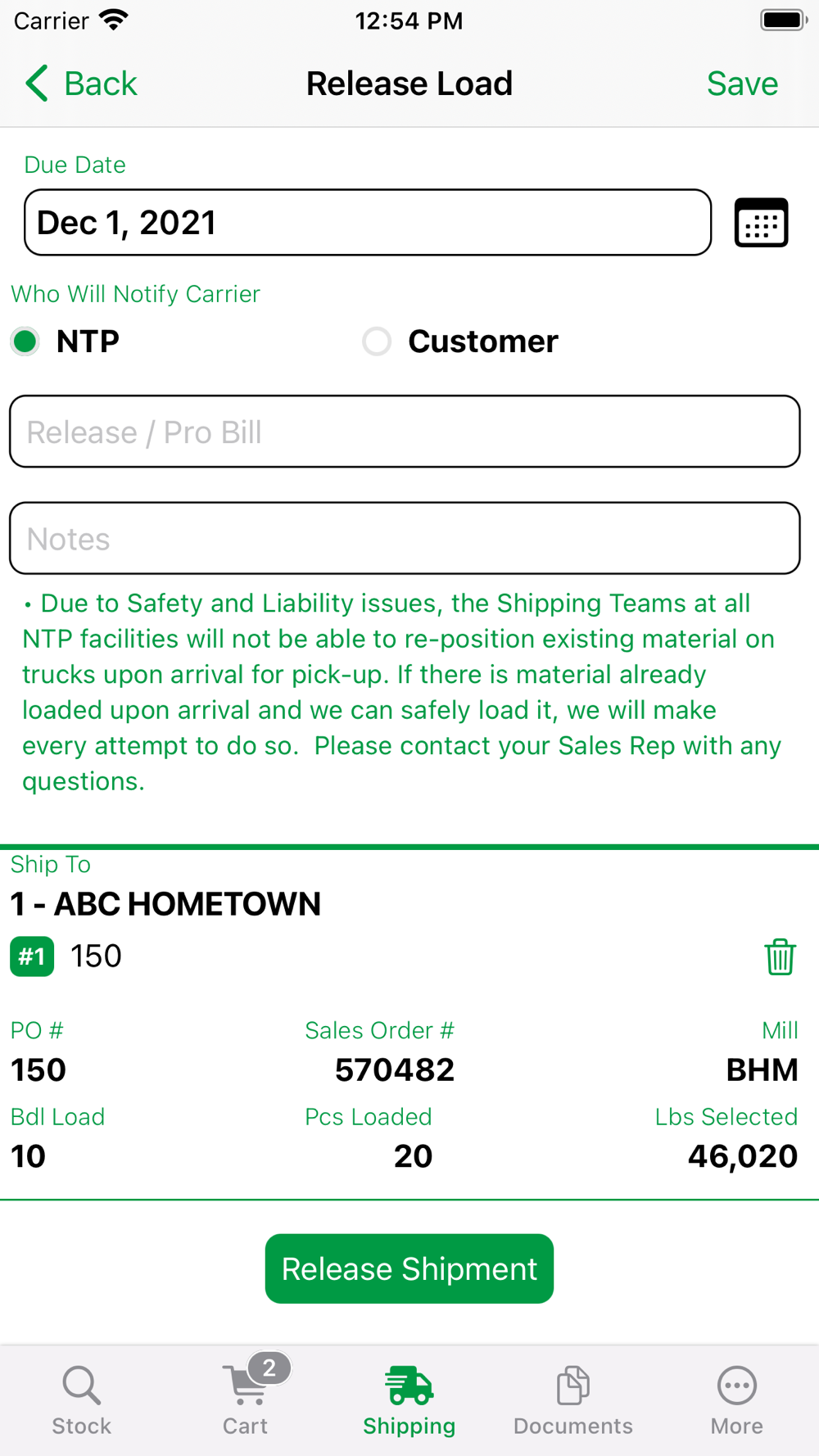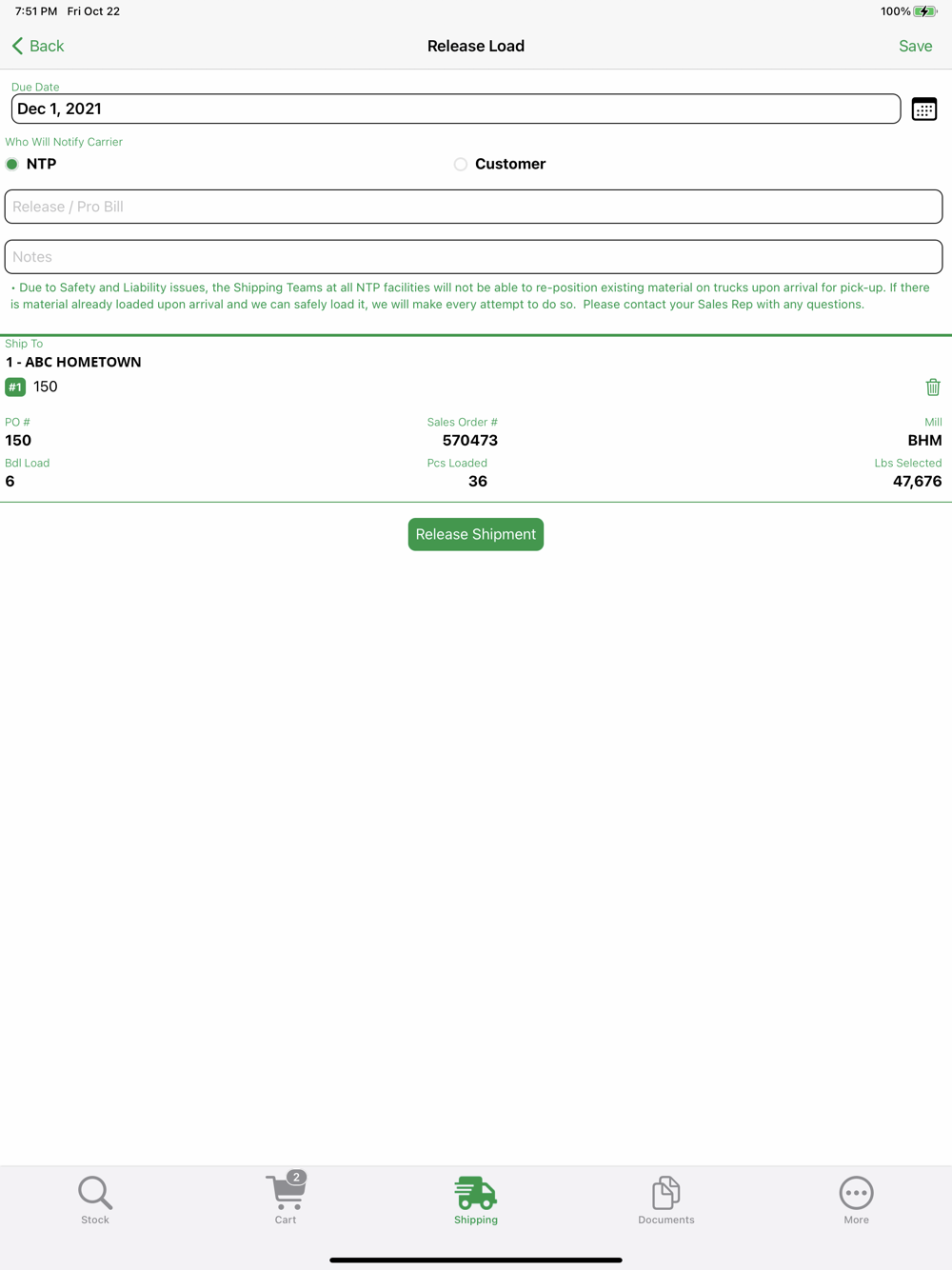 Shipping - Added Release Order & Open Orders views. Includes load all & partial loading options.