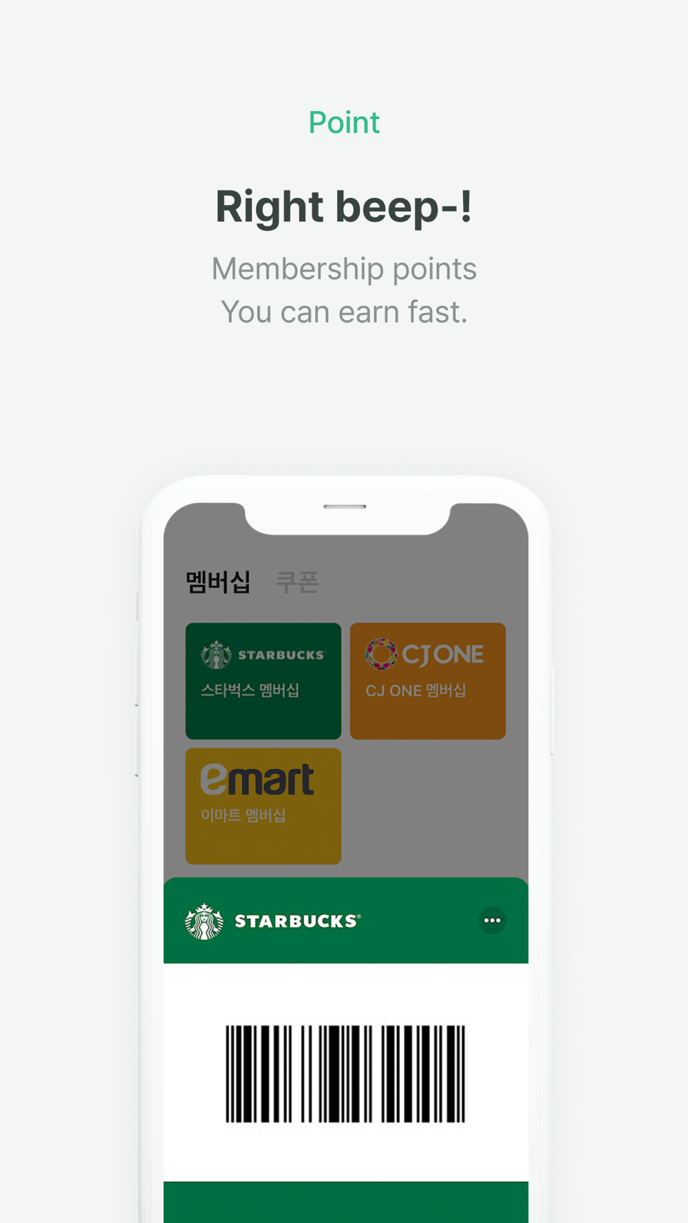 Easily and quickly add various memberships (SKT, KT, U+, Starbucks, LPoint, etc.).