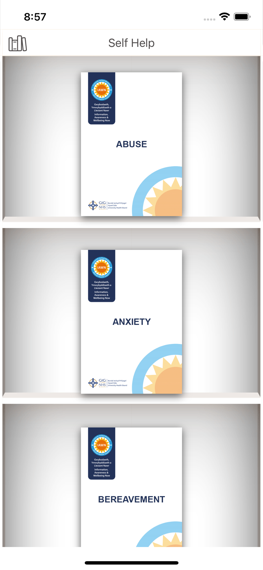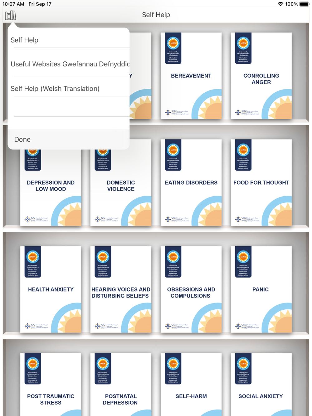 Hywel Dda Self Help gives you access to a range of mental health self-help guides. These guides, some of which have been commended at the British Medical Association Patient Information Award, have been written by NHS clinical psychologists with contributions from service users and healthcare staff.