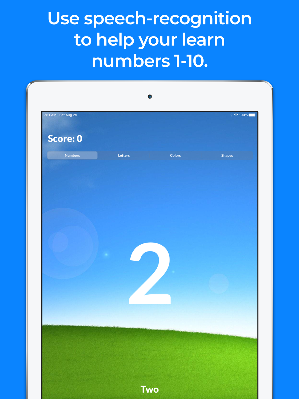 Talking 101 was designed to help encourage talking while also having fun learning the basics. This application has 4 game modes: Numbers (1-10), Letters, Colors, and Shapes.
