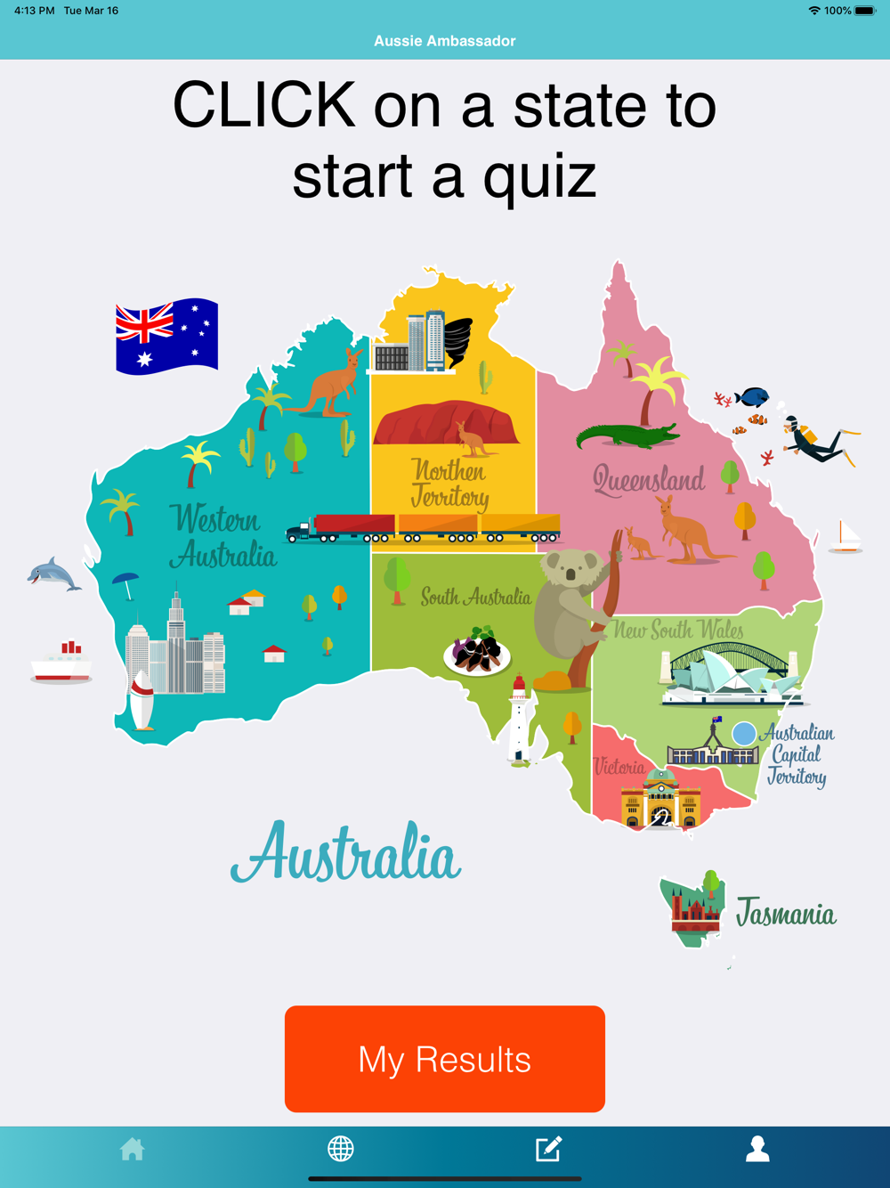 This app is fun, interactive, and educational providing participants with knowledge about Australian culture, flora and fauna, Aussie slang, Aussie food and much more.