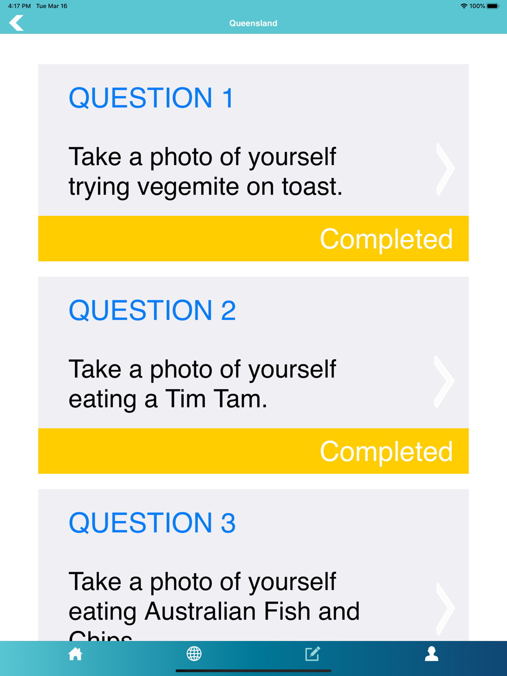 The Aussie Ambassador App provides participants with interactive, fun and exciting tasks and activities to complete that might be a part of the program they are participating in or may require participants to go above and beyond to explore further into Australian culture outside of their prescribed program.