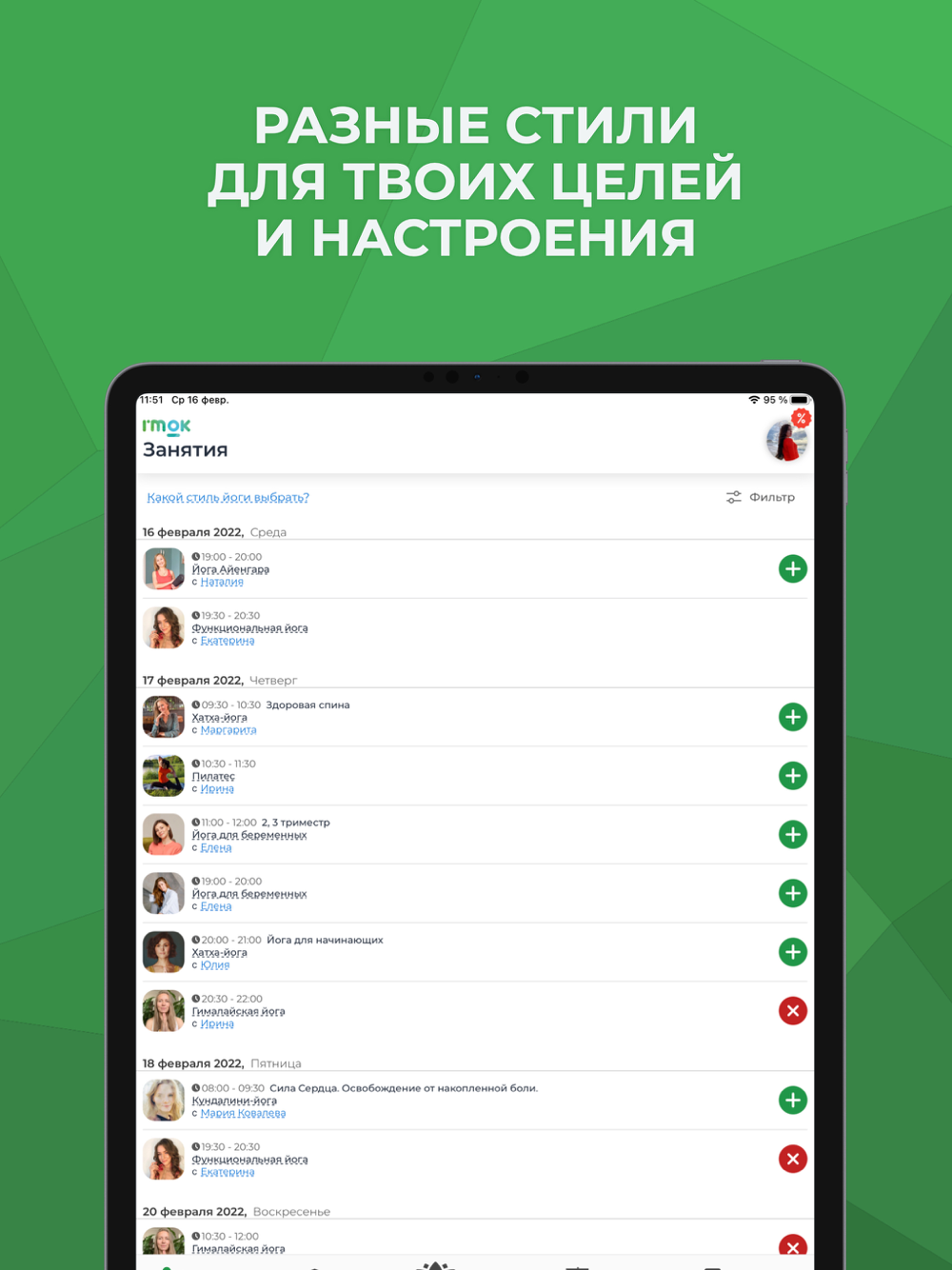 Инструктор в режиме реального времени выбирает комфортный вариант выполнения упражнений с учетом твоего физического состояния и уровня подготовки. Занятия по йоге с I’mOK доступны для начинающих, людей разного возраста и уровня гибкости тела.