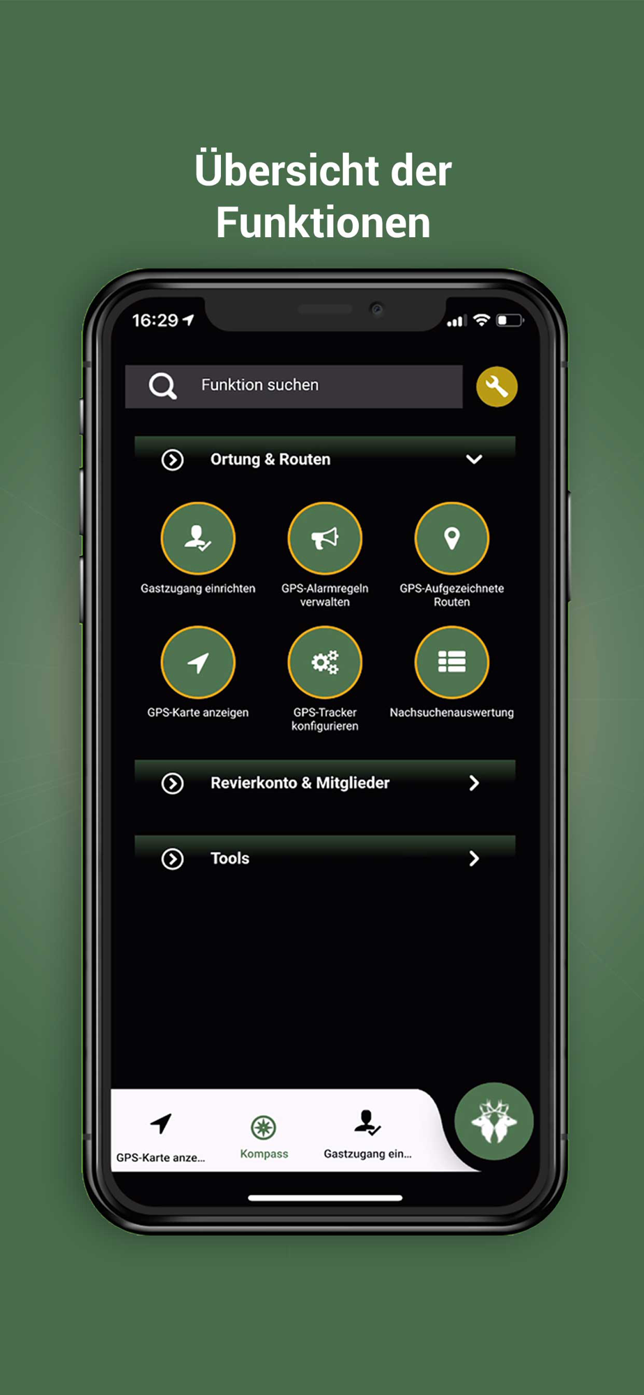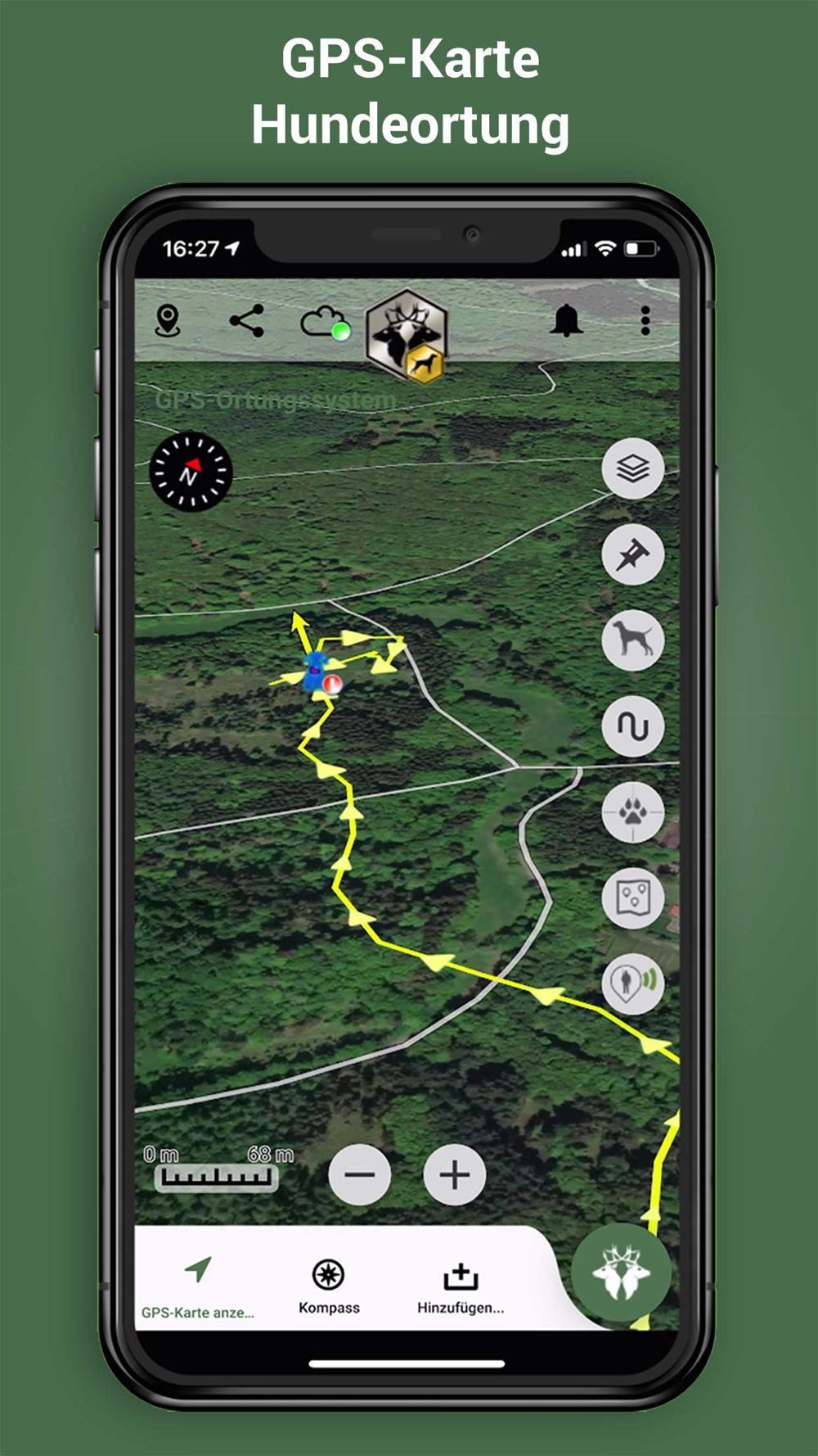 Mit Hilfe der Revierwelt: Hundeortung kann die Ortung von beliebig vielen Hunden vorgenommen werden. Nachsuchenverläufe und Treiben können aufgezeichnet, Treiberwehren koordiniert werden und vieles mehr. Diese App wurde speziell für Hundeführer entwickelt.