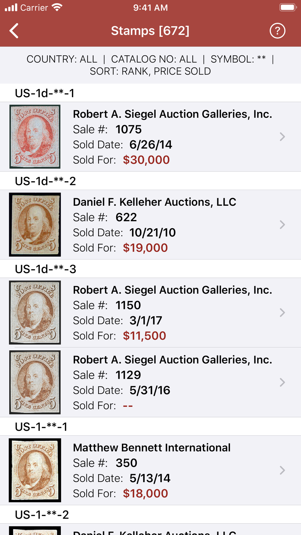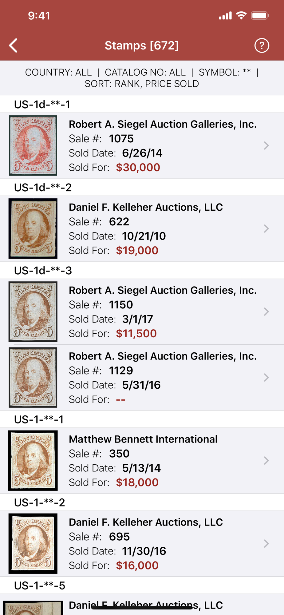 • SEARCH PROVENANCE - The extremely powerful tool which will present you with the capability to search a subset of the StampAuctionNetwork database to return a specific stamp’s provenance by country, catalog number and symbol, displaying the detailed history of each.