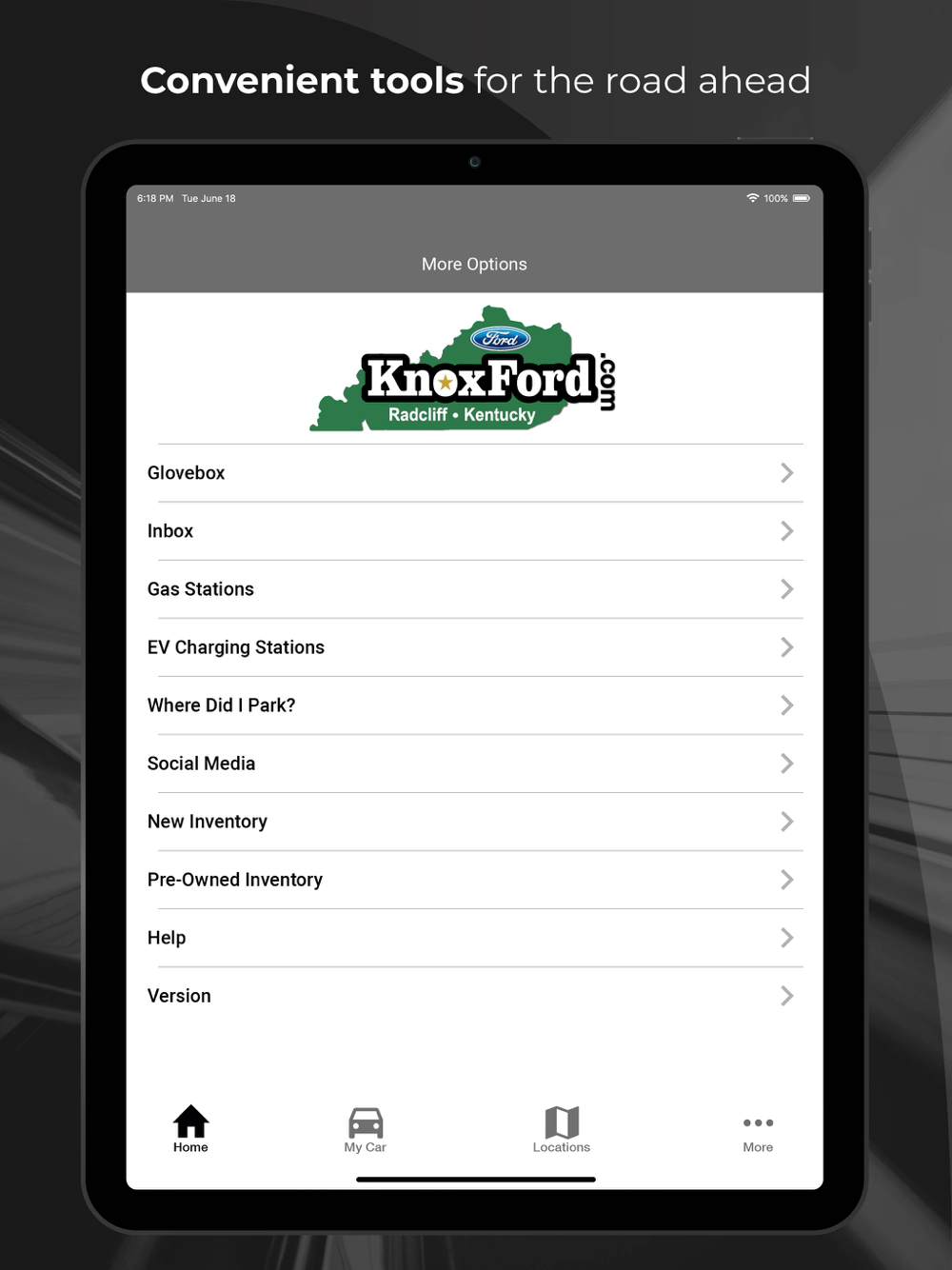 The Knox Ford Advantage Mobile App is designed for customers of our Rewards program. The dealership has locations in Radcliff KY. This app allows you to view and track your participation in the dealership's Rewards program and to view the service history of your vehicle. In addition, you are eligible for exclusive deals on service made available only to Mobile App Users!