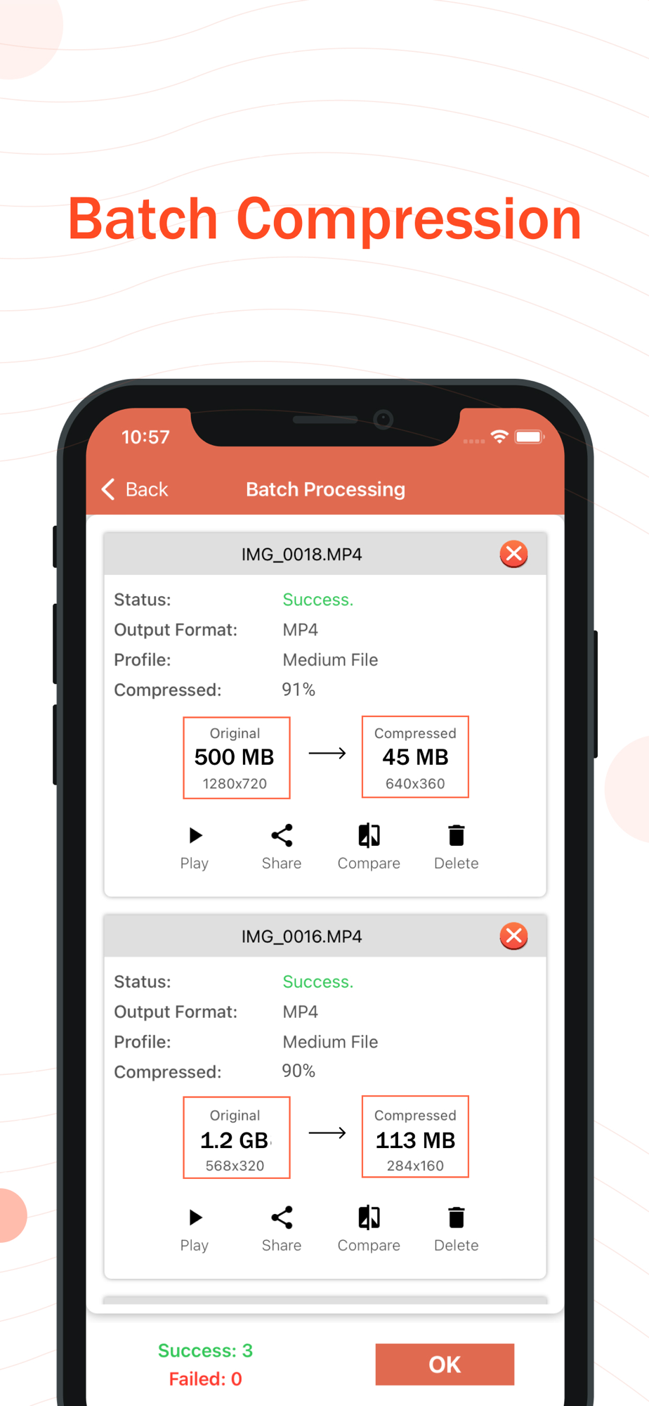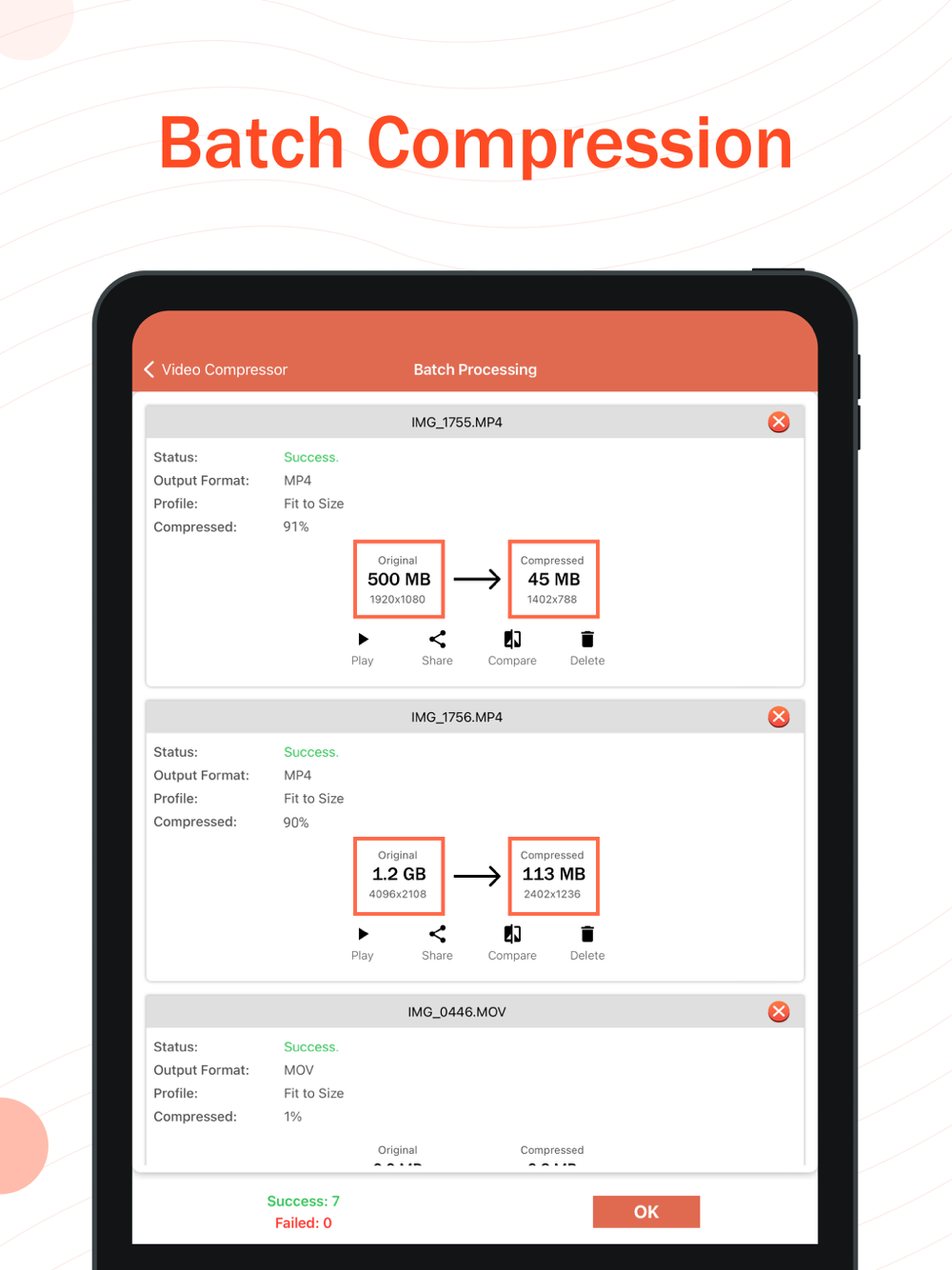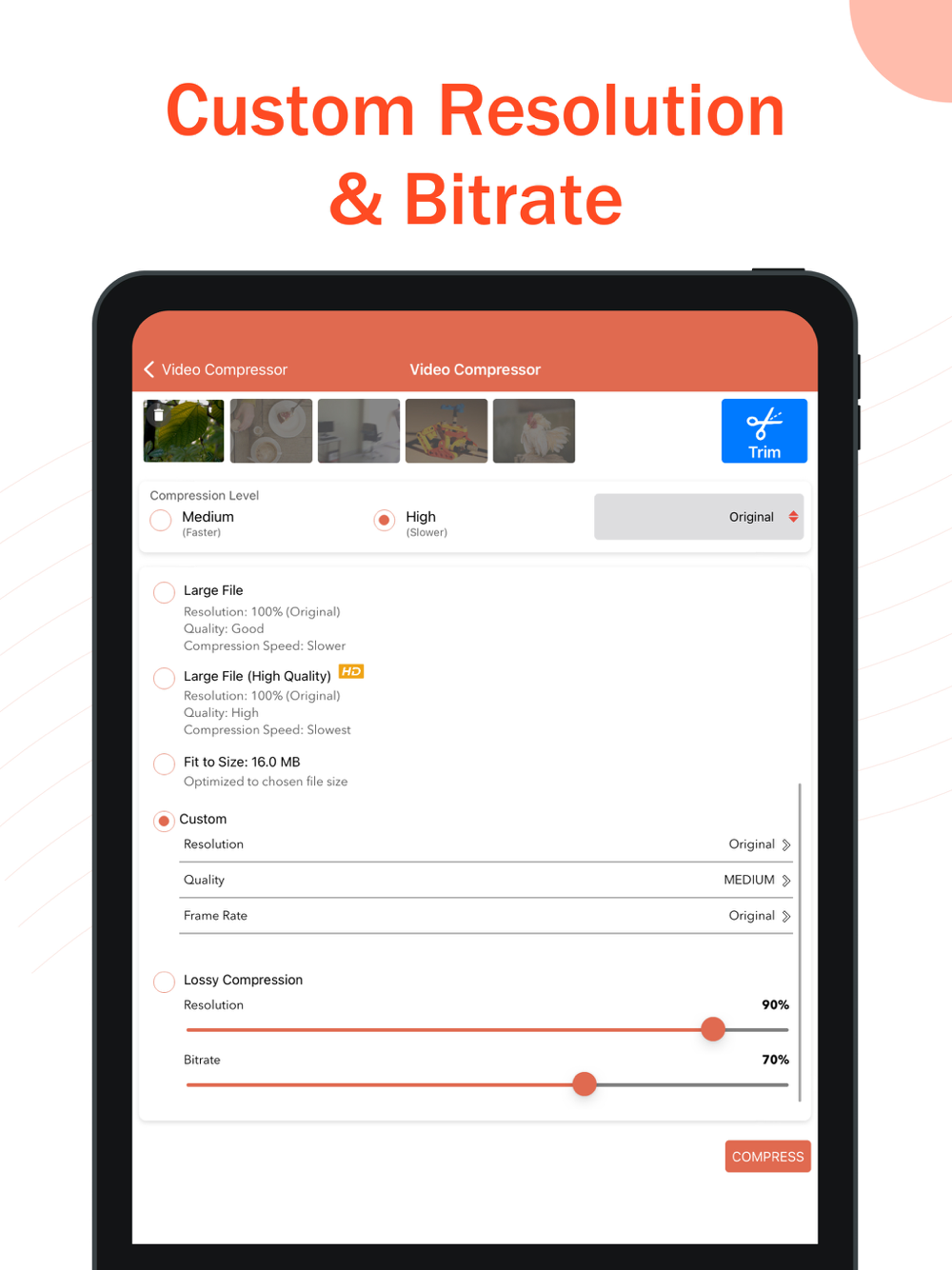 Video Compressor & Converter provides users with default compression/preset profiles to reduce the size of the video. Users can choose desired compression quality, compression speed, cut, trim and change video resolution. Users can also convert any format video to any other format. Easily merge and join videos to play together.