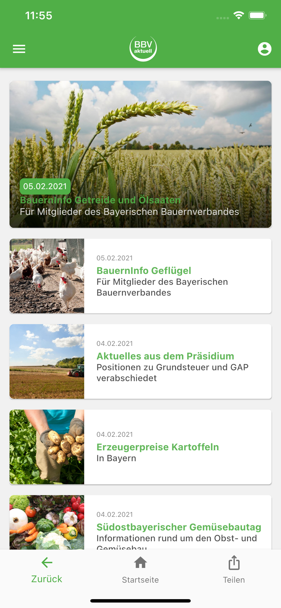von der Website und exklusive Fachinformationen (z. B. BauernInfos). Zudem kann man, wenn man als Mitglied angemeldet ist, auch Meldungen lesen, die nur für Mitglieder gedacht sind. Und das Beste daran: Auf Wunsch werden Meldungen aktiv aufs Smartphone geschickt