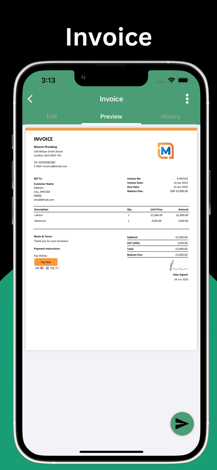 - Tailor professional PDF invoices to reflect your brand by adding your logo and send them with ease using just a few clicks
