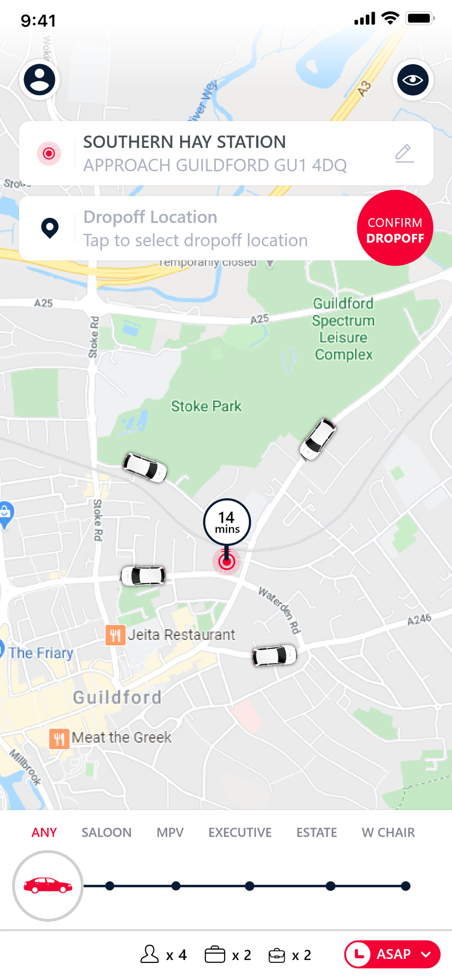Our office staff have combined total of 75 years of experience in the taxi industry in Guildford, so we feel confident that our qualified and competent telephone staff will take care of all your bookings easily. We have an excellent track record in Guildford for providing a quality local service to all Guildfordians and neigbouring villages. Over the years we have built a caring, competent company that serves all our Guildford residents well.