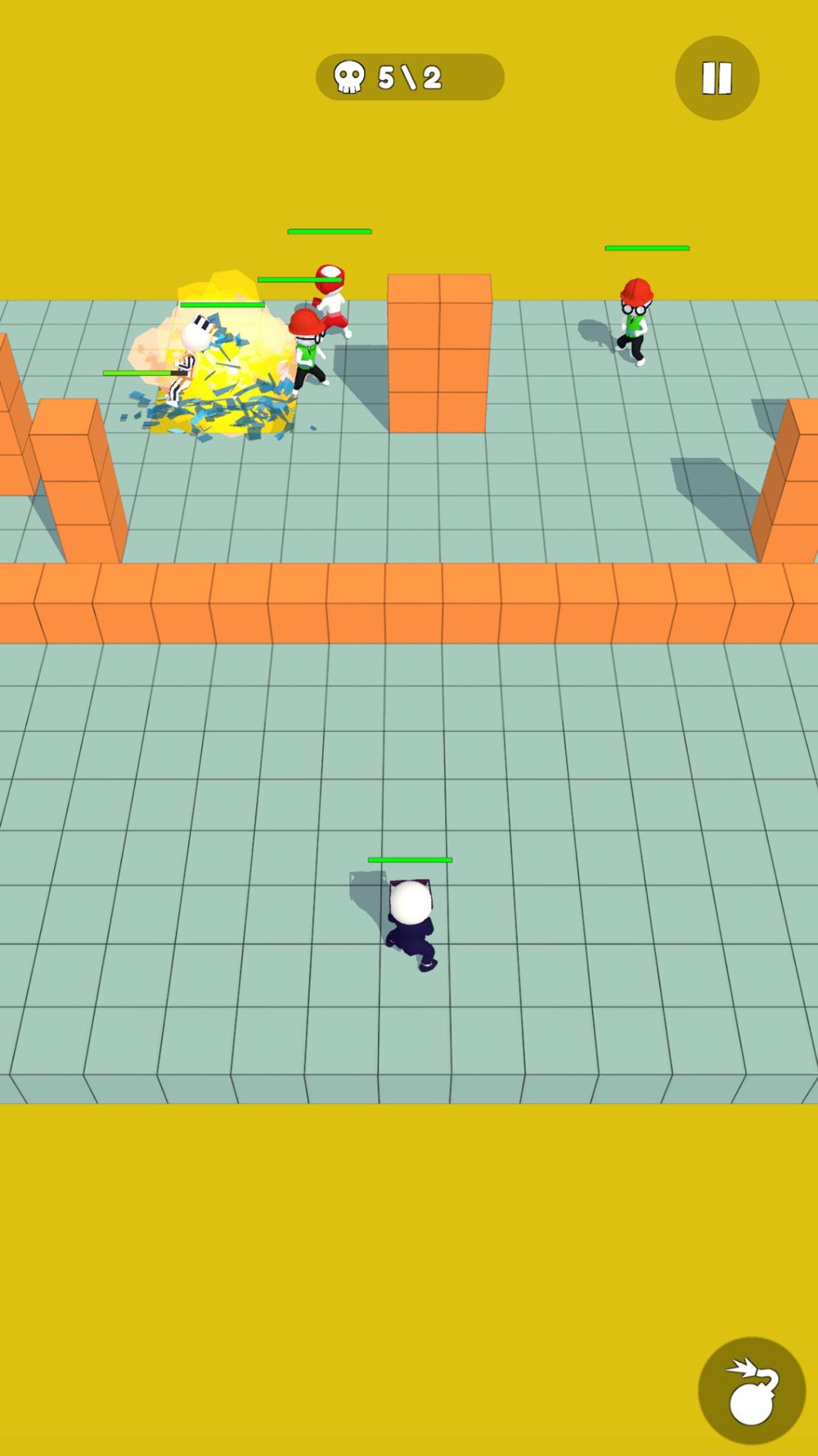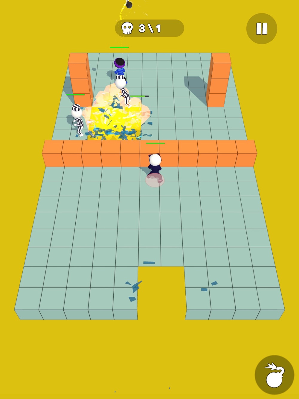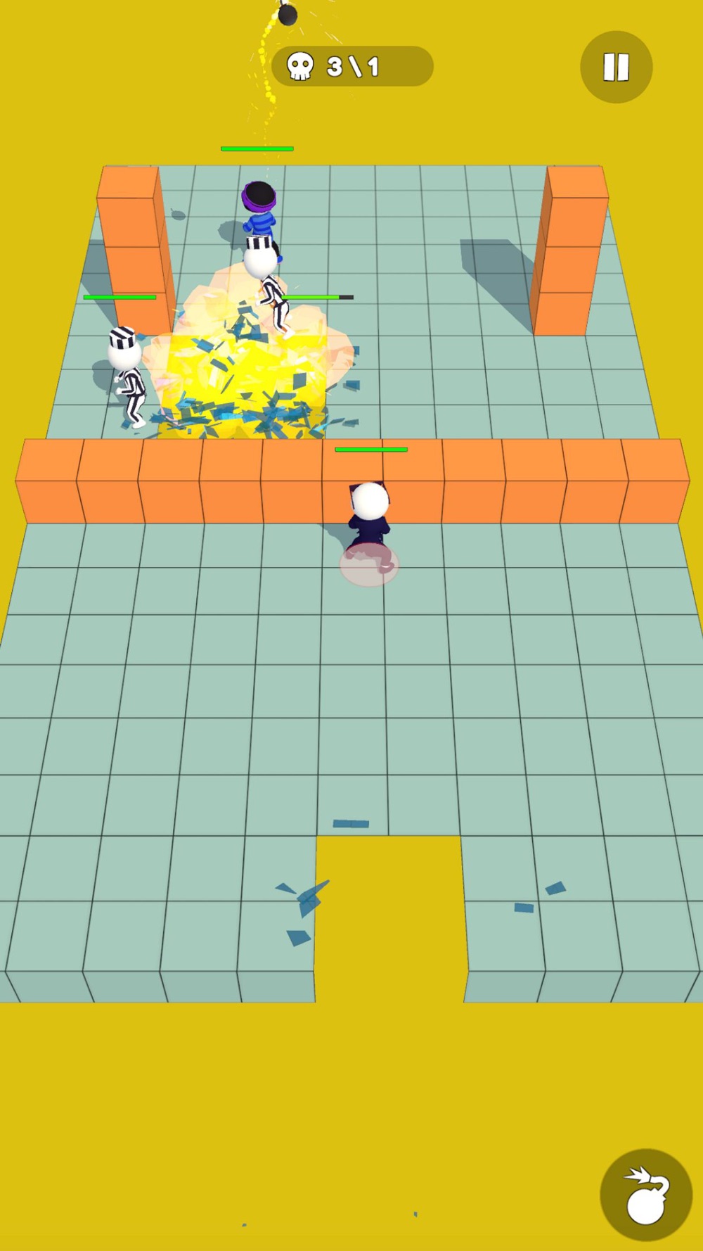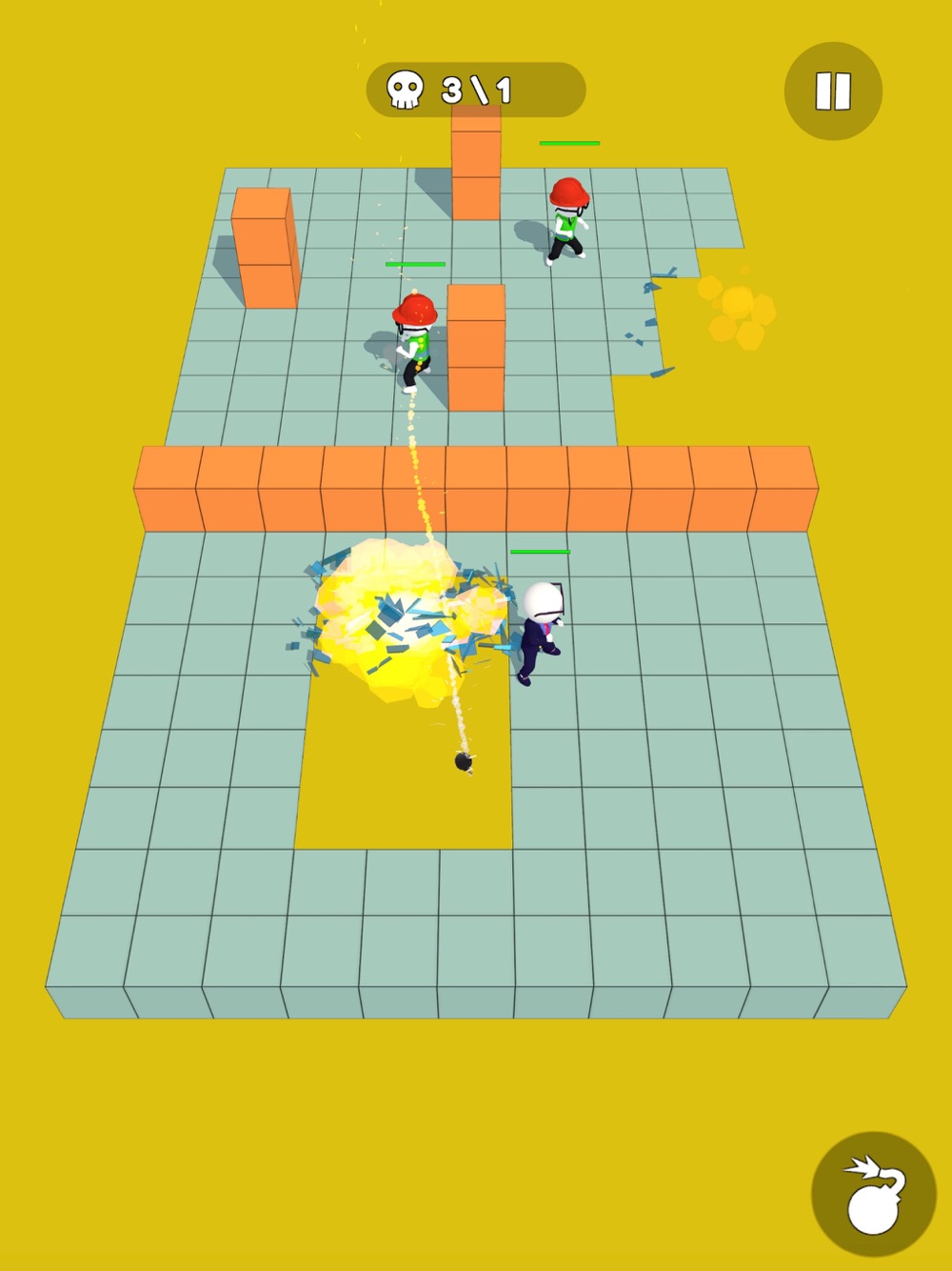 Move the player by joystick and escape from enemies bomb's. Touch on them to throw your bombs. Upgrade your speed explosion radius to kill them easly! Have Fun :)