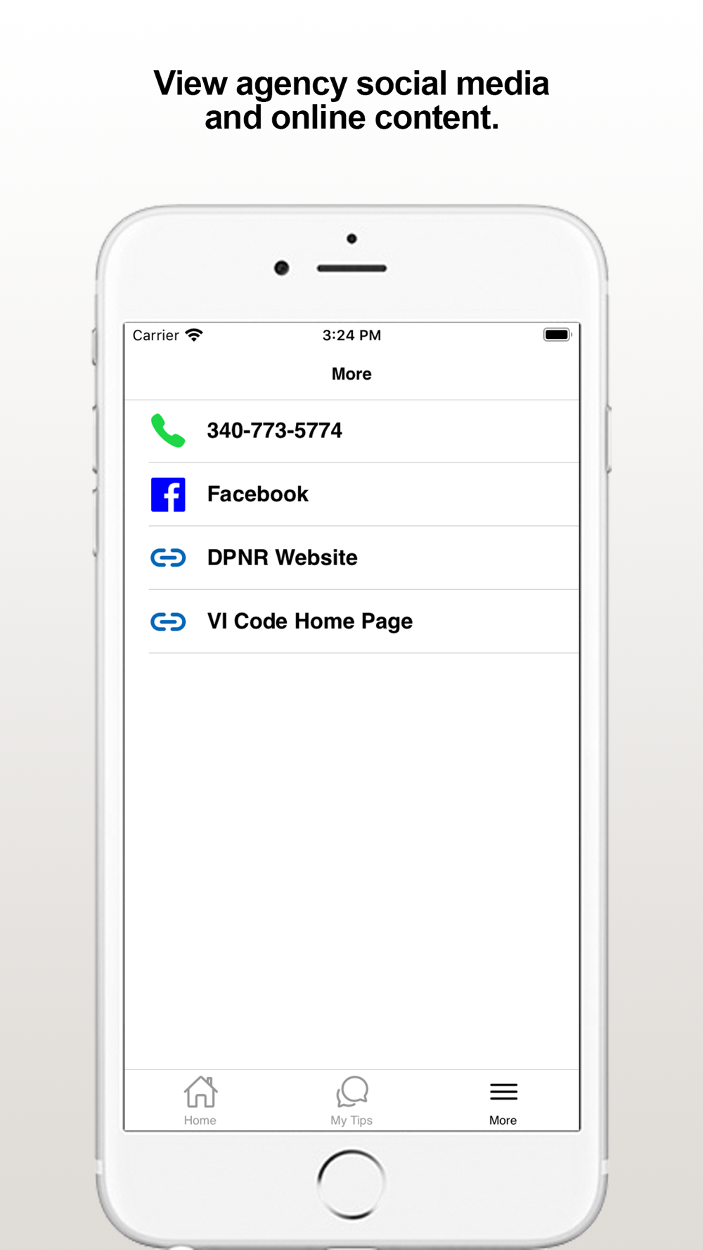 The USVI DPNR app provides citizens the ability to submit anonymous tips to the US Virgin Islands Department of Planning and Natural Resources. The app also displays agency crime alerts, and other organization web and social media content.