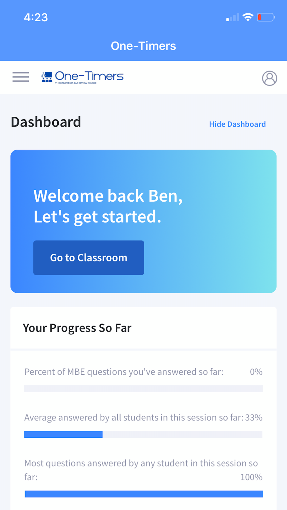 One-Timers is the only course with a curriculum & strategy designed from the ground up specifically for the CA Bar Exam, all the tools & resources of the national courses and an expert private tutor.