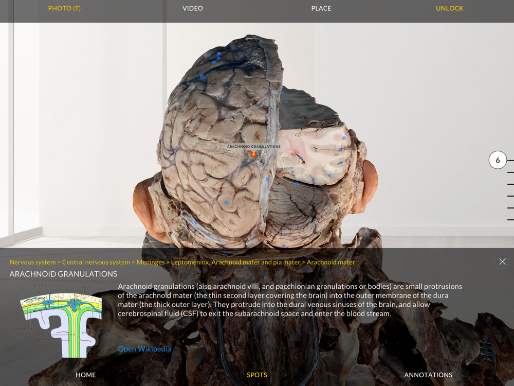 Dissection Master XR is the anatomy lab in augmented reality. The app brings high-resolution, three-dimensional datasets of professionally dissected human bodies into augmented reality and provides a high quality learning resource for medical students.