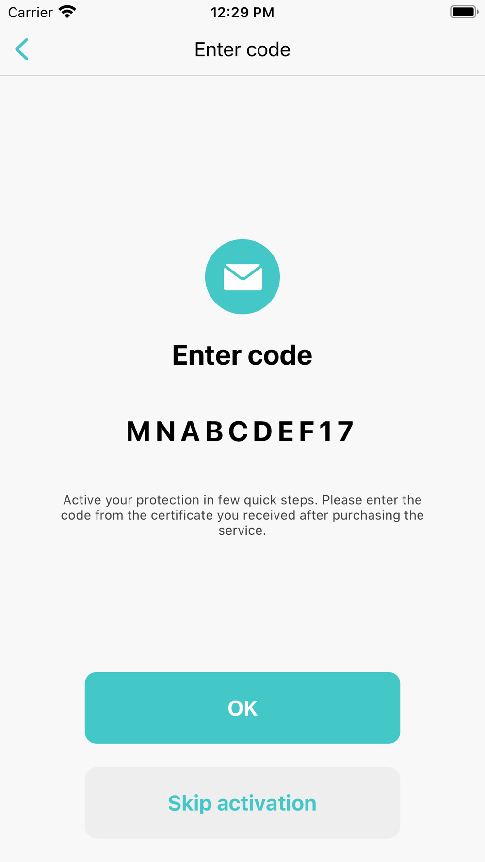 4. Enter your unique sales code, accept consents and activate protection service. In Safe Screen service we will ask you to run the test of your device. All instructions you will see on the screen, the entire process takes only few minutes.