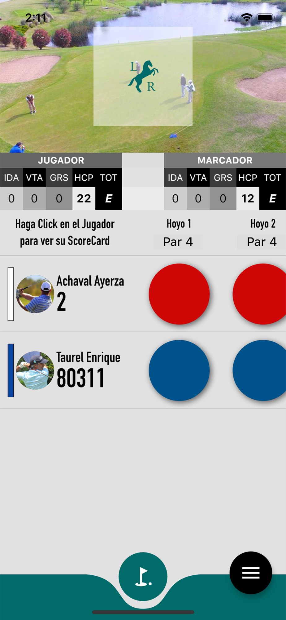 Vista completa de la Tarjeta de juego haciendo click en el nombre de cada jugador. Ahi encontrara todos los golpes y los detalles de los hoyos (como el Par, Handicap, etc).