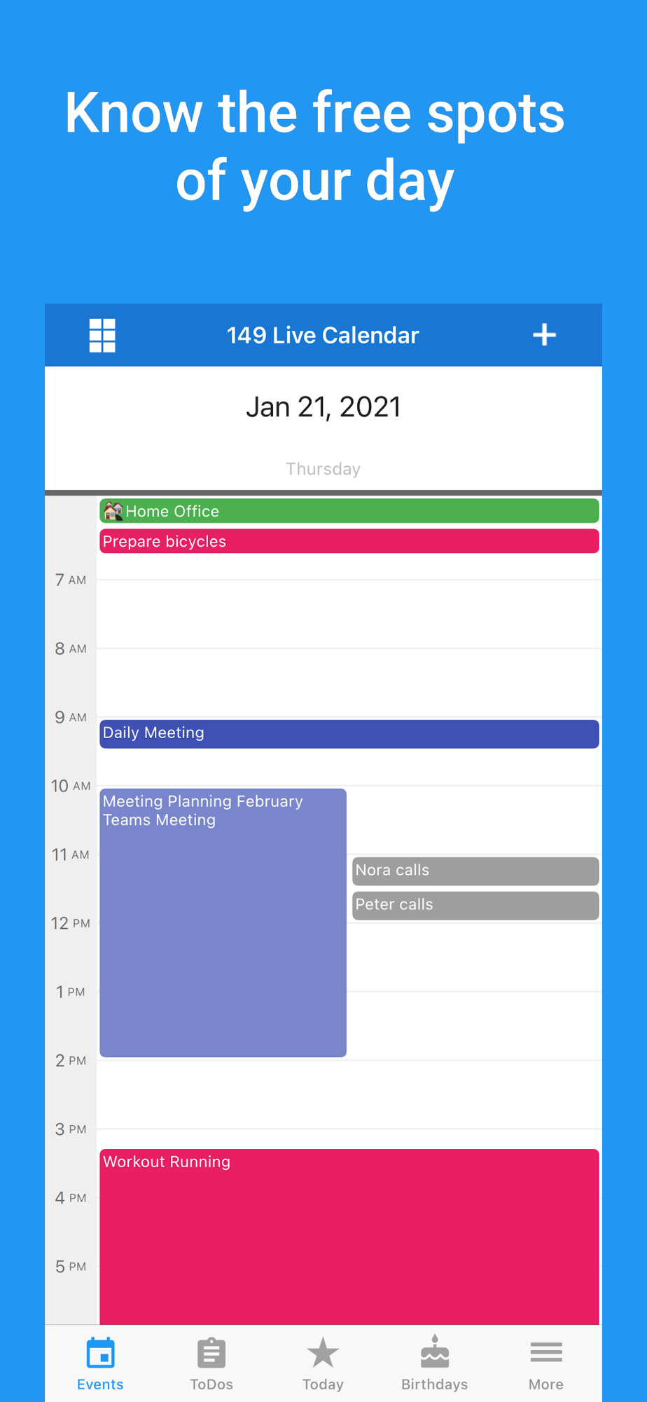 • Easily manage tasks, reminders, shopping lists, and more: Our ToDo list is perfectly integrated into all calendar views. Plus: Create own lists, set reminders, synchronize ToDos across all your devices, and view and manage iOS reminders and Google Tasks!