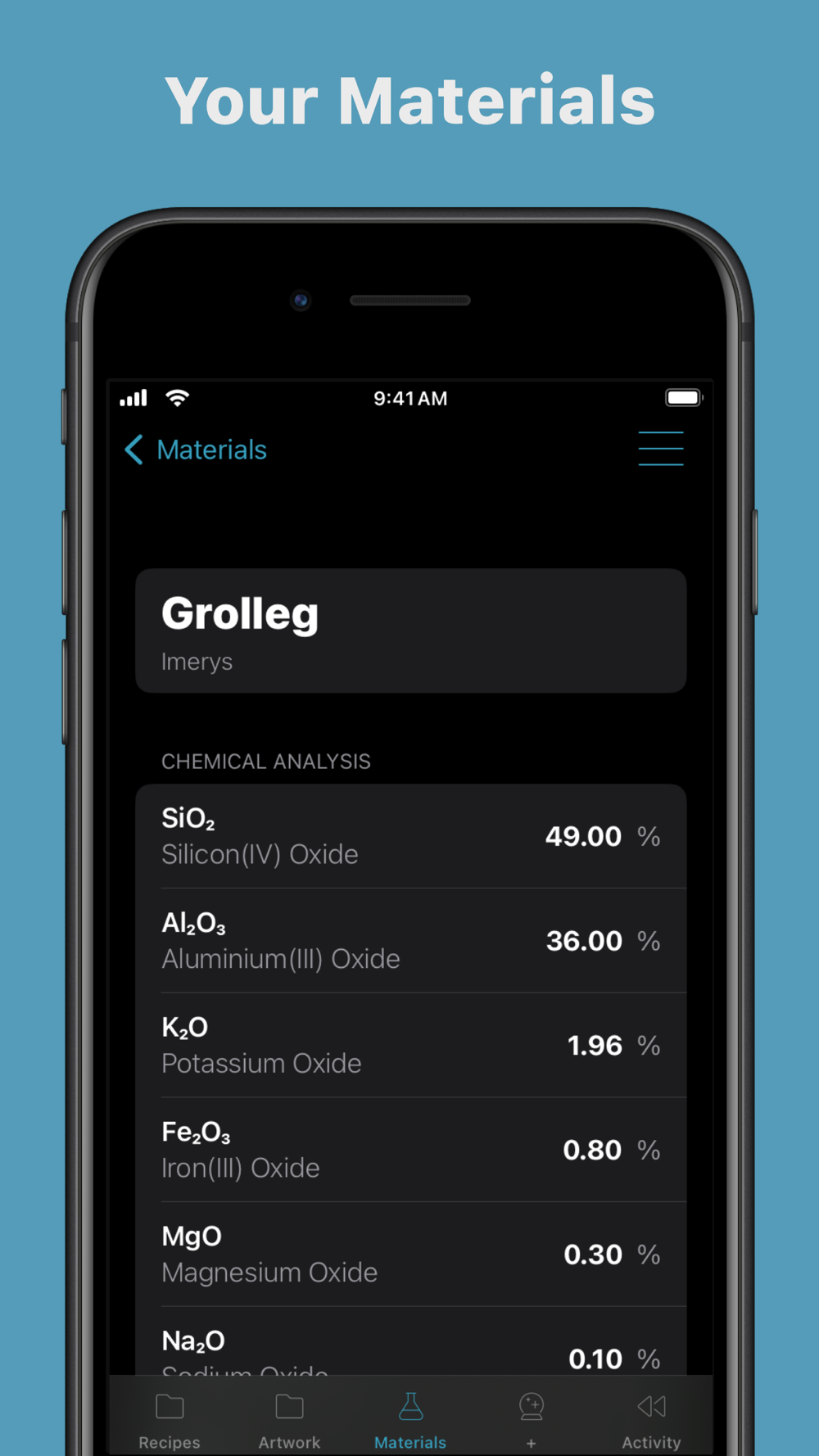 • The most advanced recipe calculator ever made. With Potfolio, UMF and Mole Percent are just the beginning. We’ve also included Specific Gravity, and have more features on the way.
