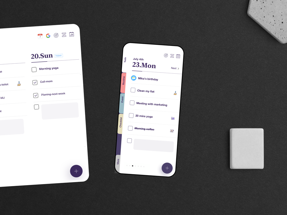 Our unique side tab interface gives you the satisfying feeling of using a paper to-do list.