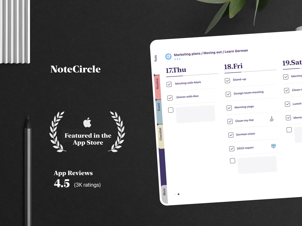 If you've tried multiple productivity apps but haven't found one that suits your needs, give NoteCircle a try. This beautiful app lets you manage all your daily tasks, weekly routines, events, and checklists in one convenient place.