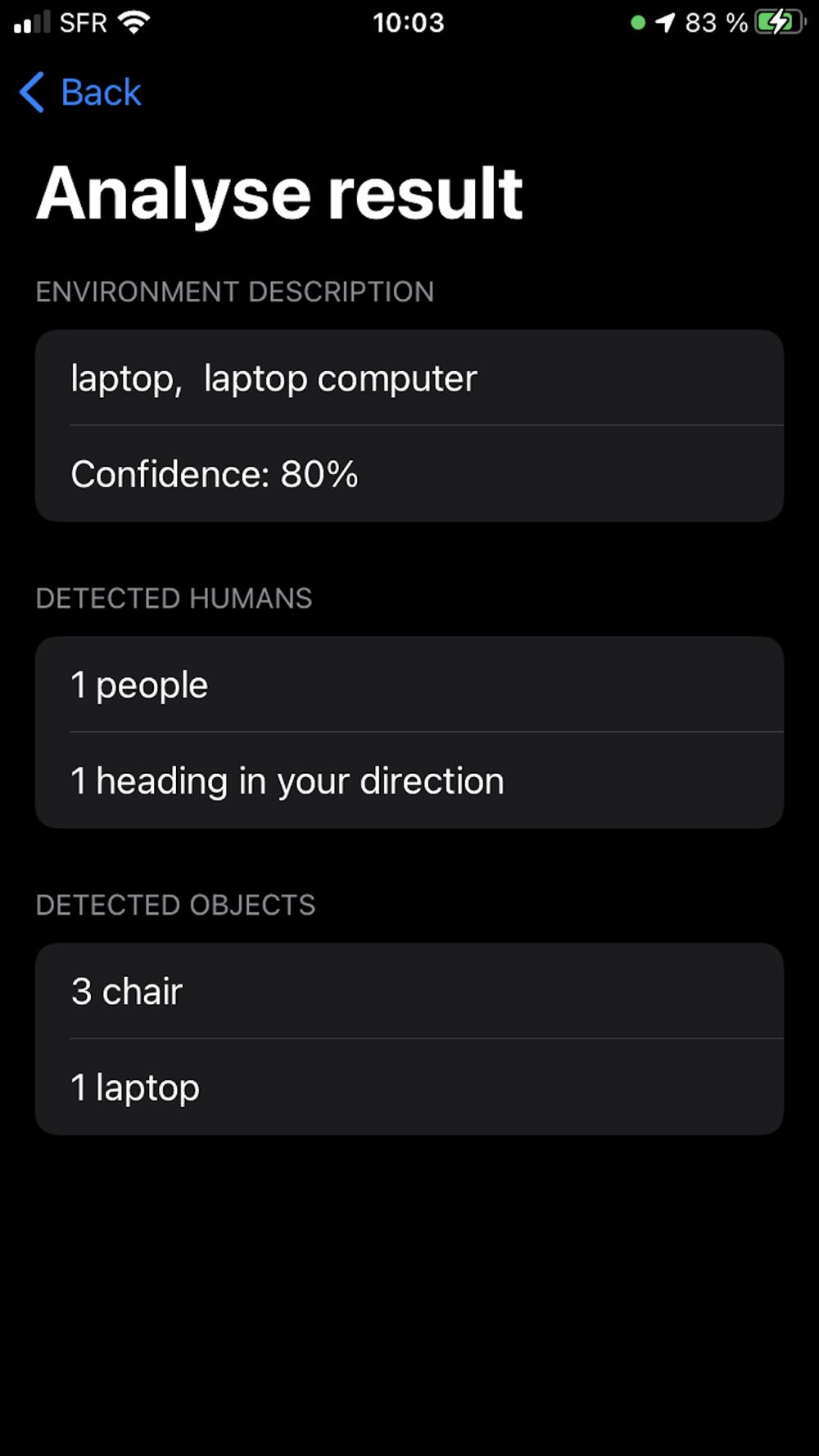 A-Eye uses machine-learning combined with augmented reality to provide a description of the environment for blind and low-vision individuals.