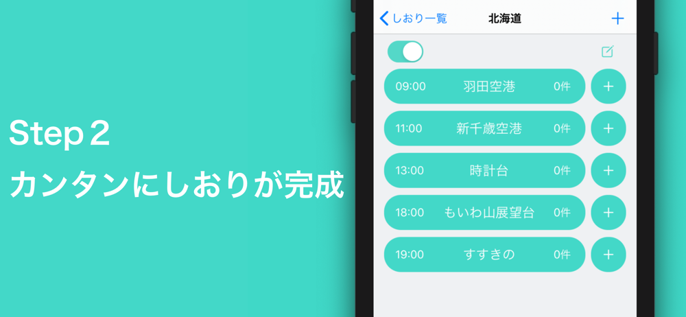 旅行先と日付を入力するだけ、一瞬で旅のしおりを作ることが出来ます。旅のしおり内部では詳細なプランの記載が可能です。それぞれの旅程において、何時にどこへ行くのかを入力してシンプルでおしゃれな旅のしおりを作りましょう。