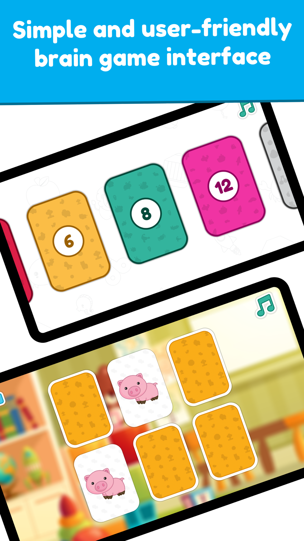 Build early learning skills with seven exciting memory match games designed to teach educational concepts and improve memory skills!